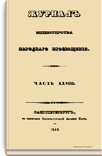 Журнал Министерства народного просвещения выходил с 1834-го по 1917 год. Официальный периодический журнал об успехах просвещения в России. Издатели журнала уверены в том, что «если для каждого человека необходим выход из грубой тьмы невежества и беспрерывное дальнейшее движение к свету, то для народов необходимо попечительное участие правительства в образовании. Только правительство имеет все средства знать и высоту успехов всемирного образования, и настоящие нужды Отечества».