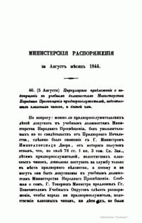 Журнал Министерства народного просвещения выходил с 1834-го по 1917 год. Официальный периодический журнал об успехах просвещения в России. Издатели журнала уверены в том, что «если для каждого человека необходим выход из грубой тьмы невежества и беспрерывное дальнейшее движение к свету, то для народов необходимо попечительное участие правительства в образовании. Только правительство имеет все средства знать и высоту успехов всемирного образования, и настоящие нужды Отечества».