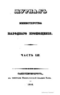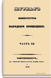 Журнал Министерства народного просвещения выходил с 1834-го по 1917 год. Официальный периодический журнал об успехах просвещения в России. Издатели журнала уверены в том, что «если для каждого человека необходим выход из грубой тьмы невежества и беспрерывное дальнейшее движение к свету, то для народов необходимо попечительное участие правительства в образовании. Только правительство имеет все средства знать и высоту успехов всемирного образования, и настоящие нужды Отечества».