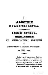 Журнал Министерства народного просвещения выходил с 1834-го по 1917 год. Официальный периодический журнал об успехах просвещения в России. Издатели журнала уверены в том, что «если для каждого человека необходим выход из грубой тьмы невежества и беспрерывное дальнейшее движение к свету, то для народов необходимо попечительное участие правительства в образовании. Только правительство имеет все средства знать и высоту успехов всемирного образования, и настоящие нужды Отечества».