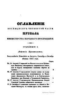 С 1864 года стали выходить указатели к повременным изданиям Министерства народного просвещения начиная с 1803 года.