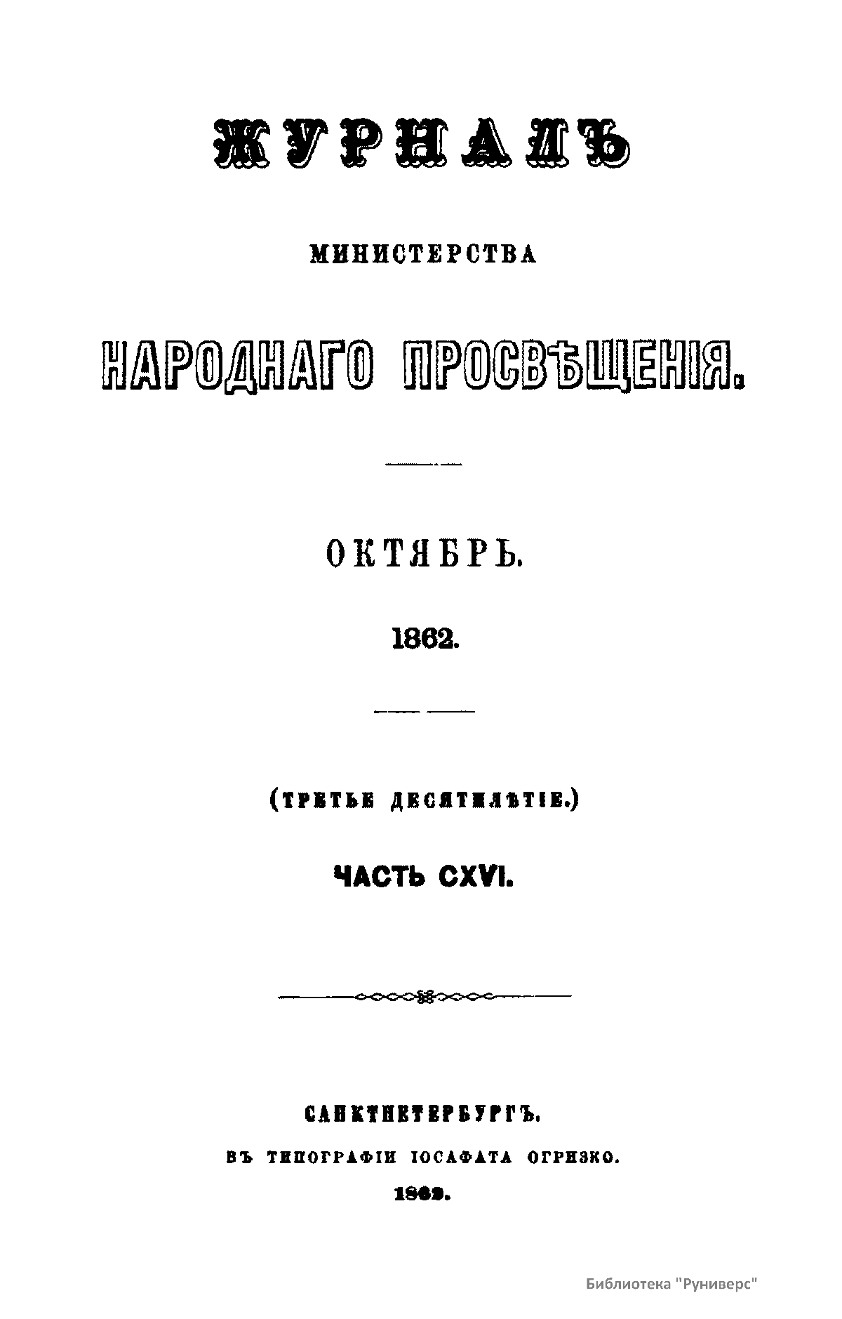 Журнал Министерства народного просвещения. Часть CXVI