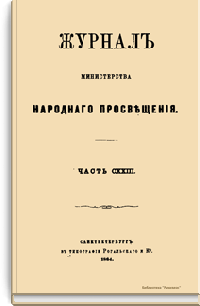 Журнал Министерства народного просвещения выходил с 1834-го по 1917 год. Официальный периодический журнал об успехах просвещения в России. Издатели журнала уверены в том, что «если для каждого человека необходим выход из грубой тьмы невежества и беспрерывное дальнейшее движение к свету, то для народов необходимо попечительное участие правительства в образовании. Только правительство имеет все средства знать и высоту успехов всемирного образования, и настоящие нужды Отечества».