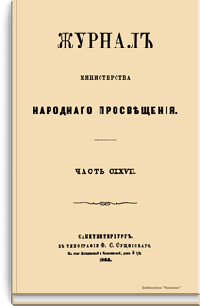 Журнал Министерства народного просвещения выходил с 1834-го по 1917 год. Официальный периодический журнал об успехах просвещения в России. Издатели журнала уверены в том, что «если для каждого человека необходим выход из грубой тьмы невежества и беспрерывное дальнейшее движение к свету, то для народов необходимо попечительное участие правительства в образовании. Только правительство имеет все средства знать и высоту успехов всемирного образования, и настоящие нужды Отечества».