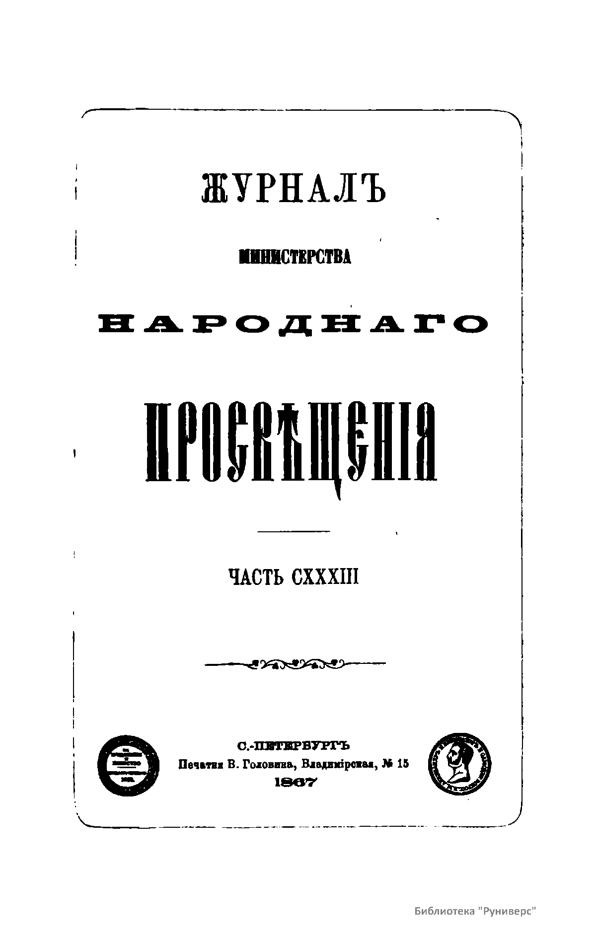 Журнал Министерства народного просвещения. Часть CXXXIII