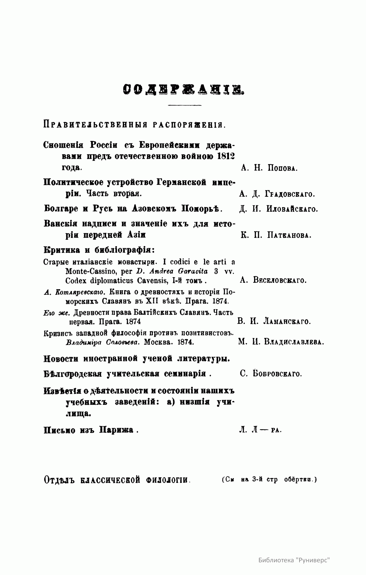 С 1864 года стали выходить указатели к повременным изданиям Министерства народного просвещения начиная с 1803 года.