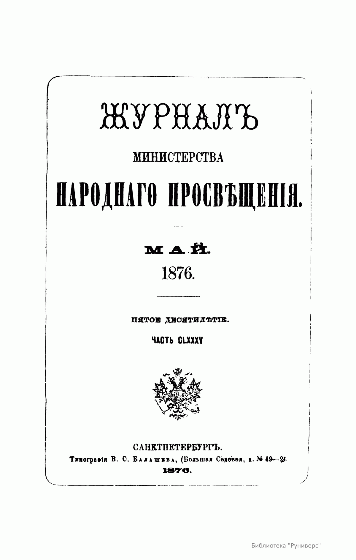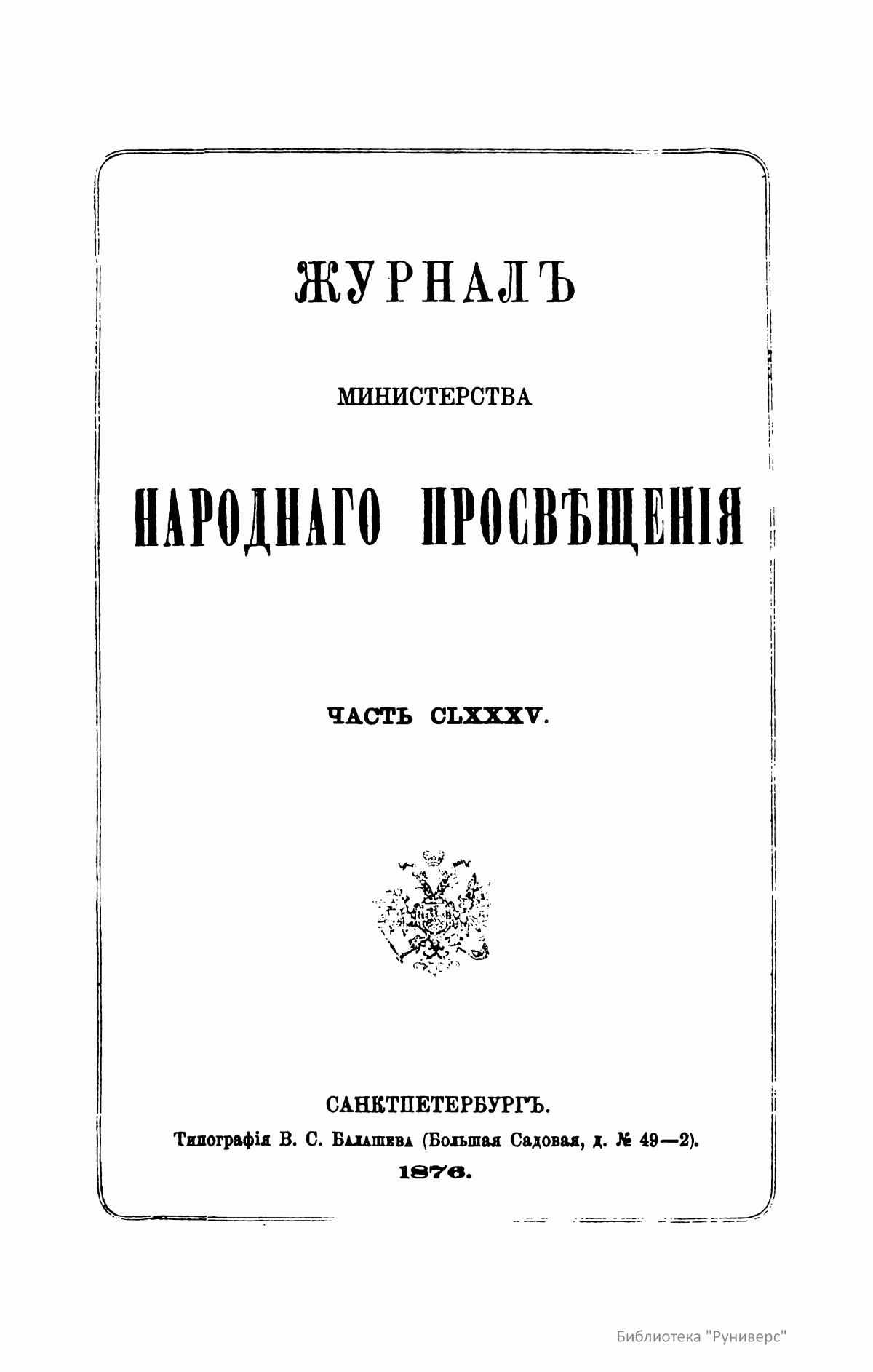 Журнал Министерства народного просвещения. Часть CLXXXV