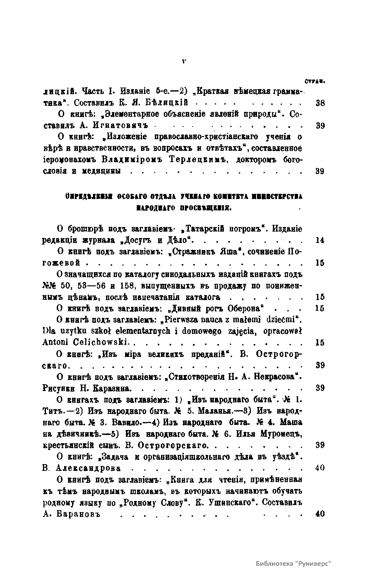 С 1864 года стали выходить указатели к повременным изданиям Министерства народного просвещения начиная с 1803 года.