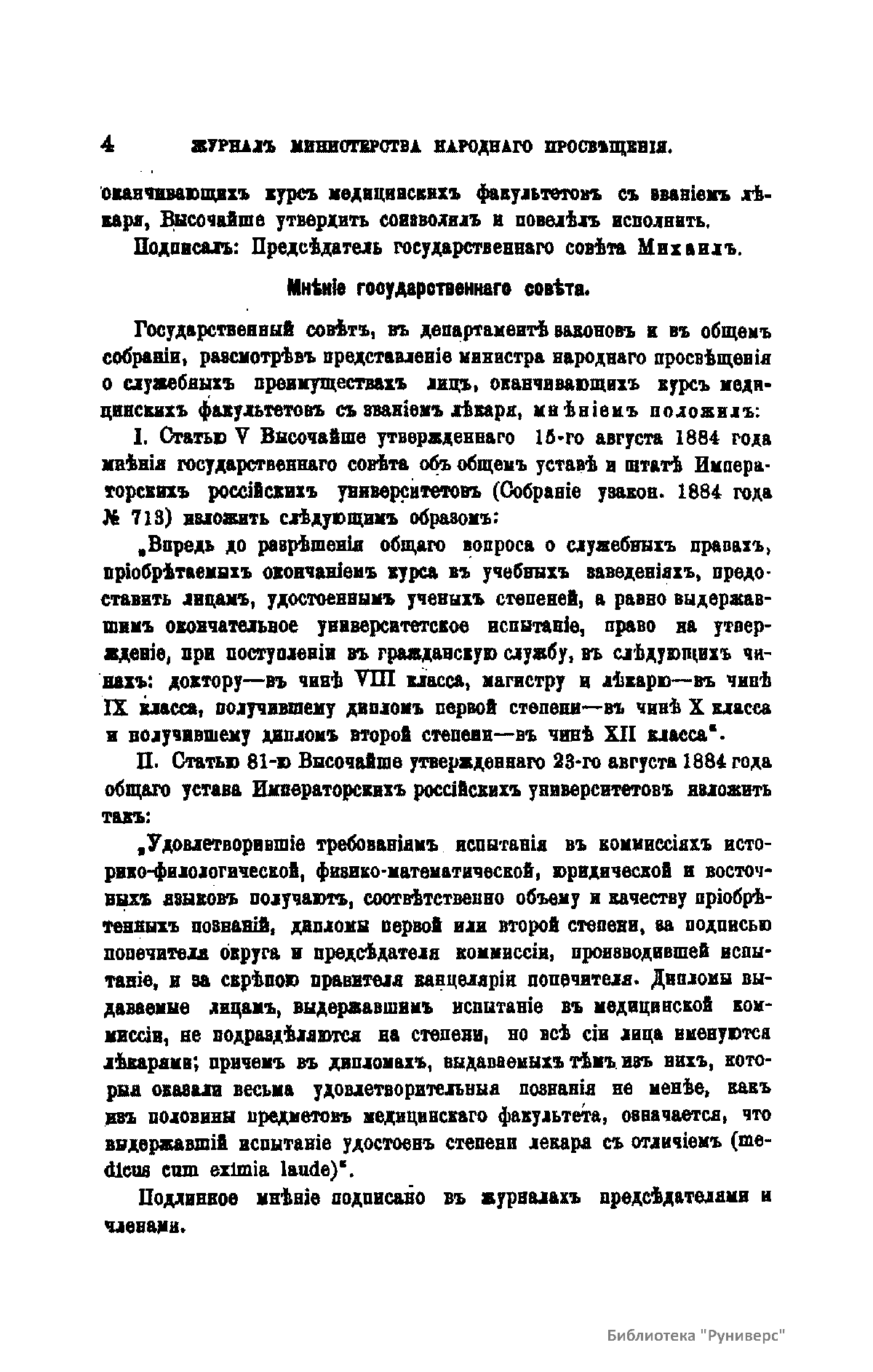 Журнал Министерства народного просвещения выходил с 1834-го по 1917 год. Официальный периодический журнал об успехах просвещения в России. Издатели журнала уверены в том, что «если для каждого человека необходим выход из грубой тьмы невежества и беспрерывное дальнейшее движение к свету, то для народов необходимо попечительное участие правительства в образовании. Только правительство имеет все средства знать и высоту успехов всемирного образования, и настоящие нужды Отечества».