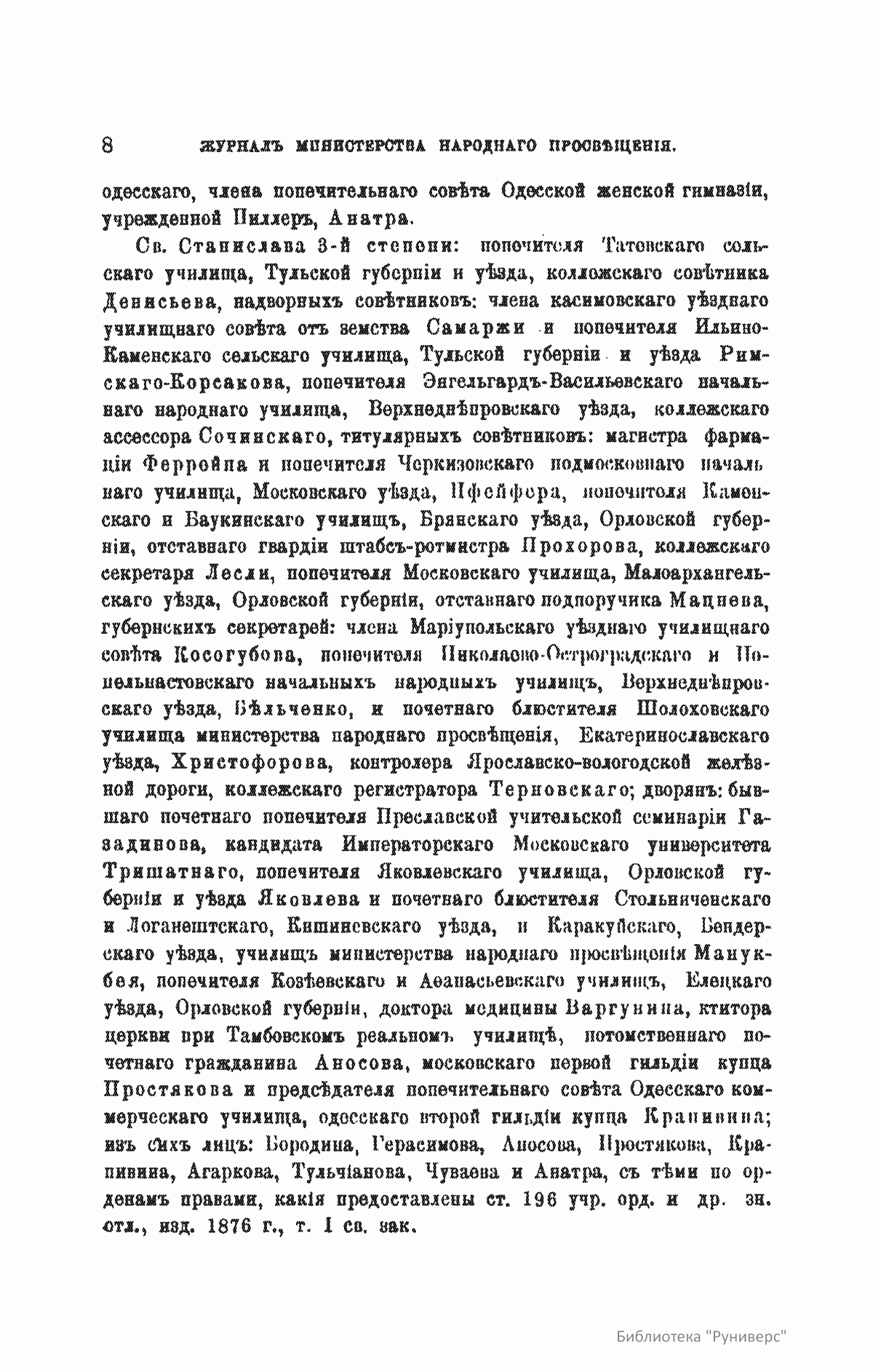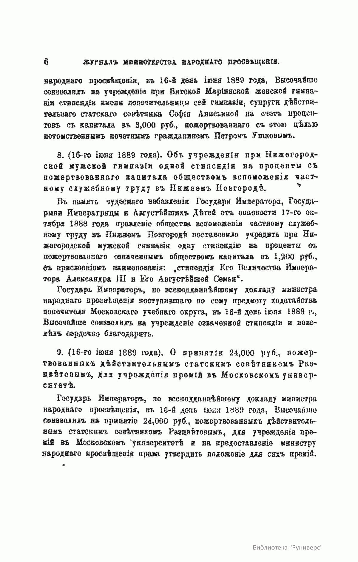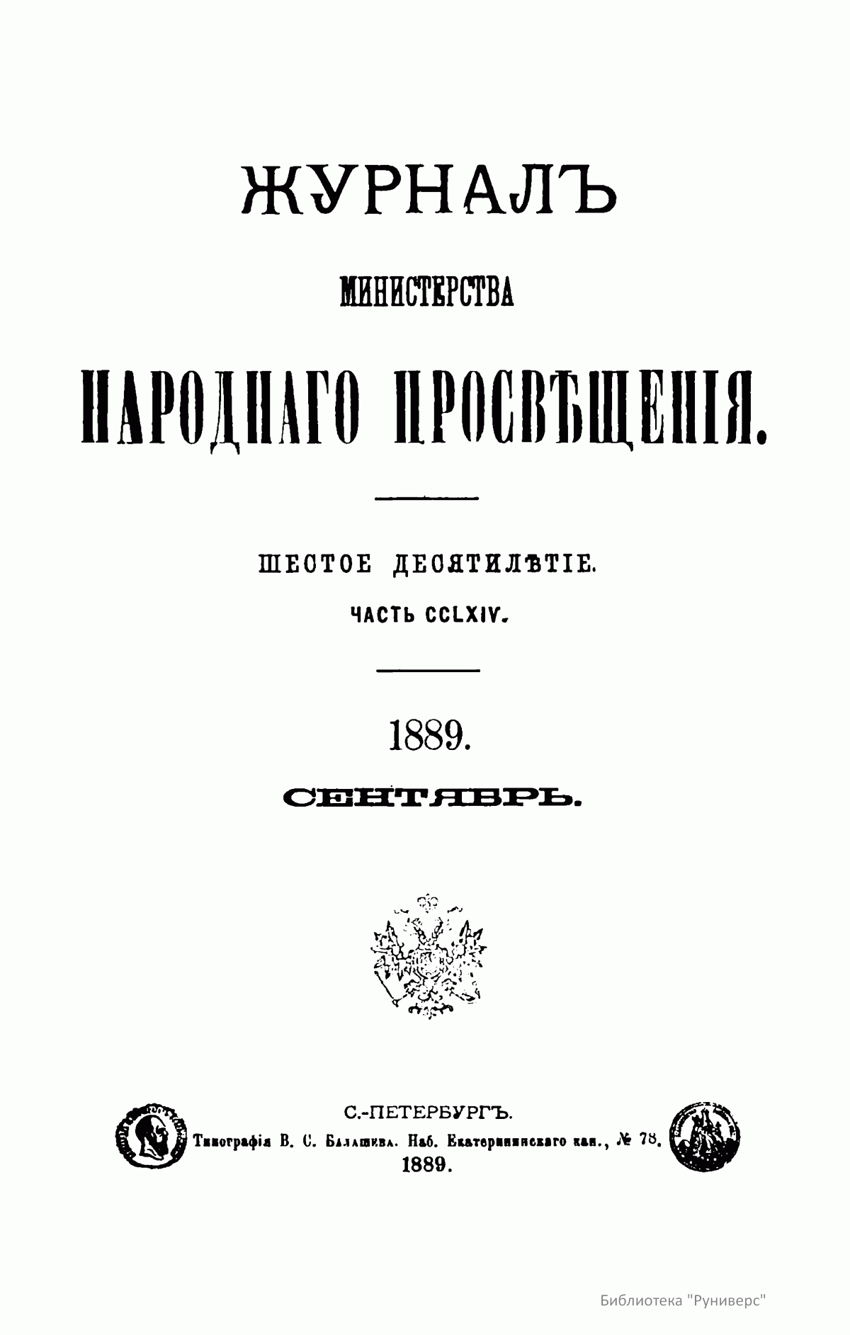 Журнал Министерства народного просвещения выходил с 1834-го по 1917 год. Официальный периодический журнал об успехах просвещения в России. Издатели журнала уверены в том, что «если для каждого человека необходим выход из грубой тьмы невежества и беспрерывное дальнейшее движение к свету, то для народов необходимо попечительное участие правительства в образовании. Только правительство имеет все средства знать и высоту успехов всемирного образования, и настоящие нужды Отечества».