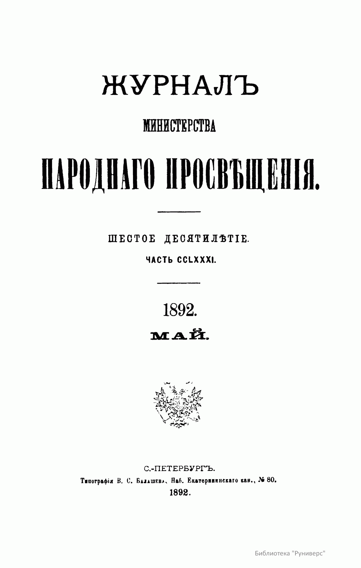 Журнал Министерства народного просвещения. Часть CCLXXXI