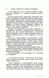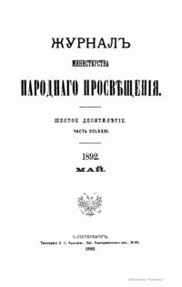 Журнал Министерства народного просвещения выходил с 1834-го по 1917 год. Официальный периодический журнал об успехах просвещения в России. Издатели журнала уверены в том, что «если для каждого человека необходим выход из грубой тьмы невежества и беспрерывное дальнейшее движение к свету, то для народов необходимо попечительное участие правительства в образовании. Только правительство имеет все средства знать и высоту успехов всемирного образования, и настоящие нужды Отечества».