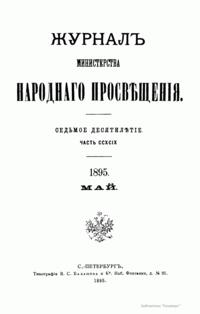 Журнал Министерства народного просвещения выходил с 1834-го по 1917 год. Официальный периодический журнал об успехах просвещения в России. Издатели журнала уверены в том, что «если для каждого человека необходим выход из грубой тьмы невежества и беспрерывное дальнейшее движение к свету, то для народов необходимо попечительное участие правительства в образовании. Только правительство имеет все средства знать и высоту успехов всемирного образования, и настоящие нужды Отечества».