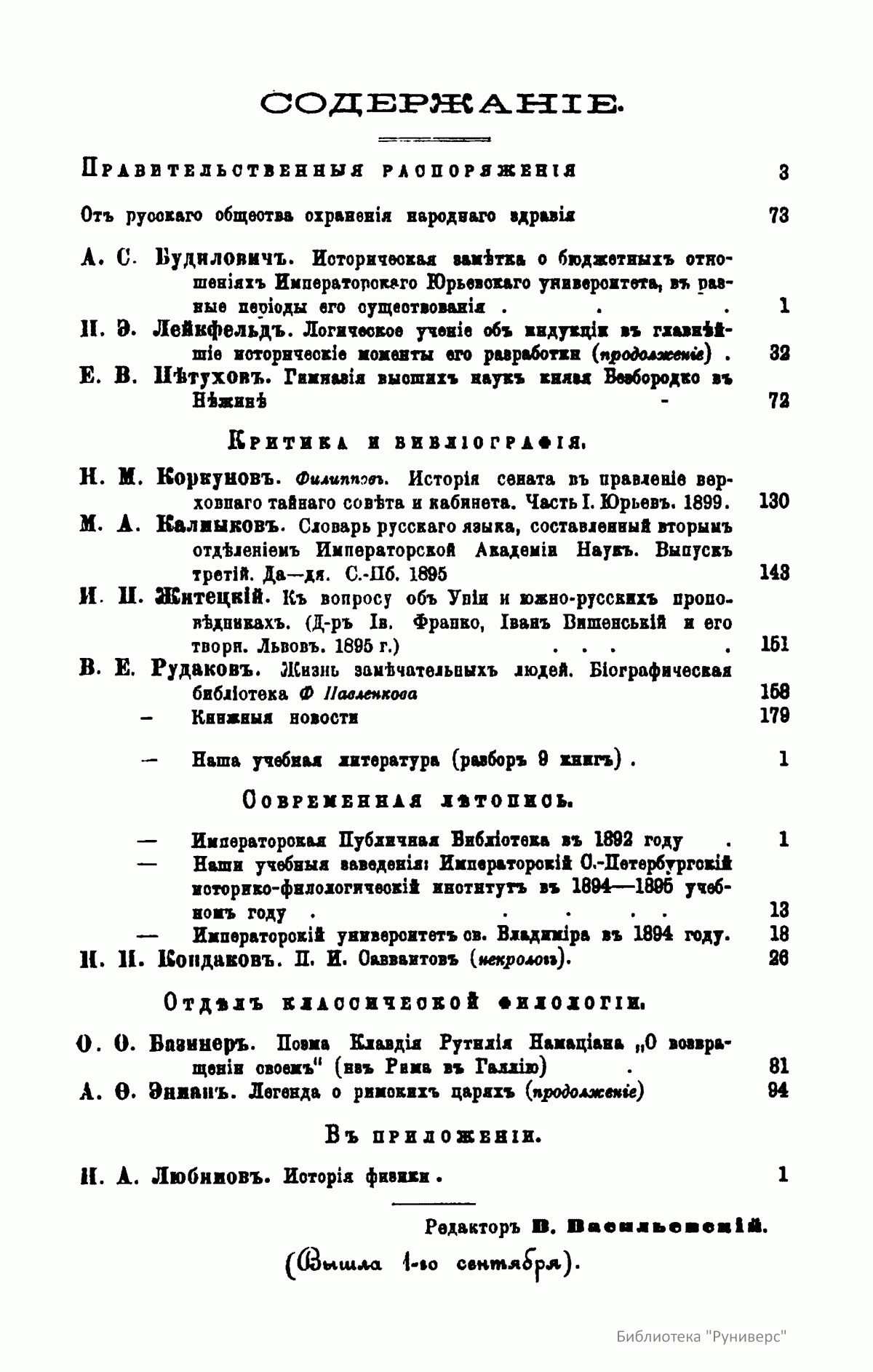 (помощник редактора, с 1899 года - редактор).