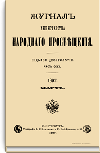 Журнал Министерства народного просвещения выходил с 1834-го по 1917 год. Официальный периодический журнал об успехах просвещения в России. Издатели журнала уверены в том, что «если для каждого человека необходим выход из грубой тьмы невежества и беспрерывное дальнейшее движение к свету, то для народов необходимо попечительное участие правительства в образовании. Только правительство имеет все средства знать и высоту успехов всемирного образования, и настоящие нужды Отечества».