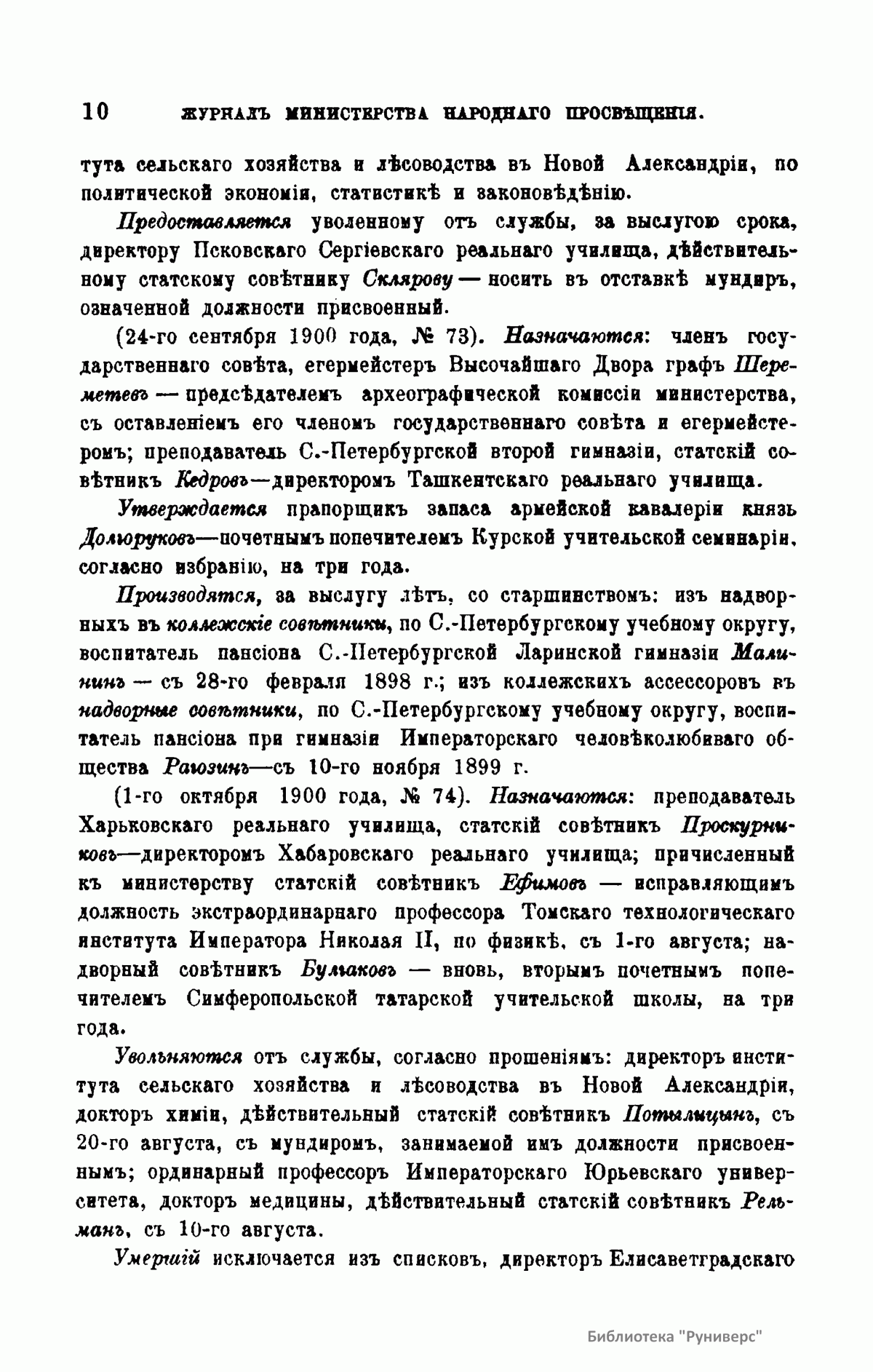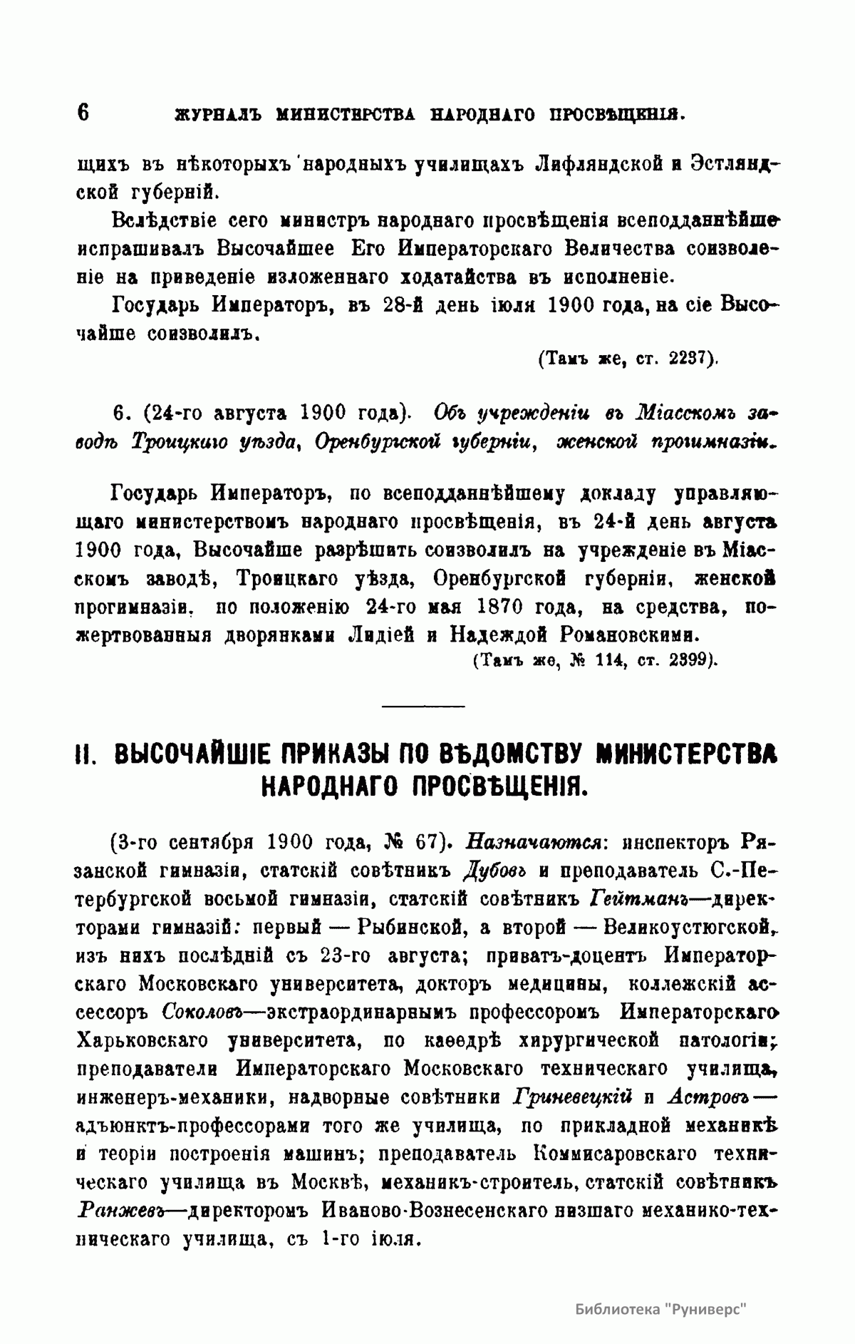 Журнал Министерства народного просвещения выходил с 1834-го по 1917 год. Официальный периодический журнал об успехах просвещения в России. Издатели журнала уверены в том, что «если для каждого человека необходим выход из грубой тьмы невежества и беспрерывное дальнейшее движение к свету, то для народов необходимо попечительное участие правительства в образовании. Только правительство имеет все средства знать и высоту успехов всемирного образования, и настоящие нужды Отечества».