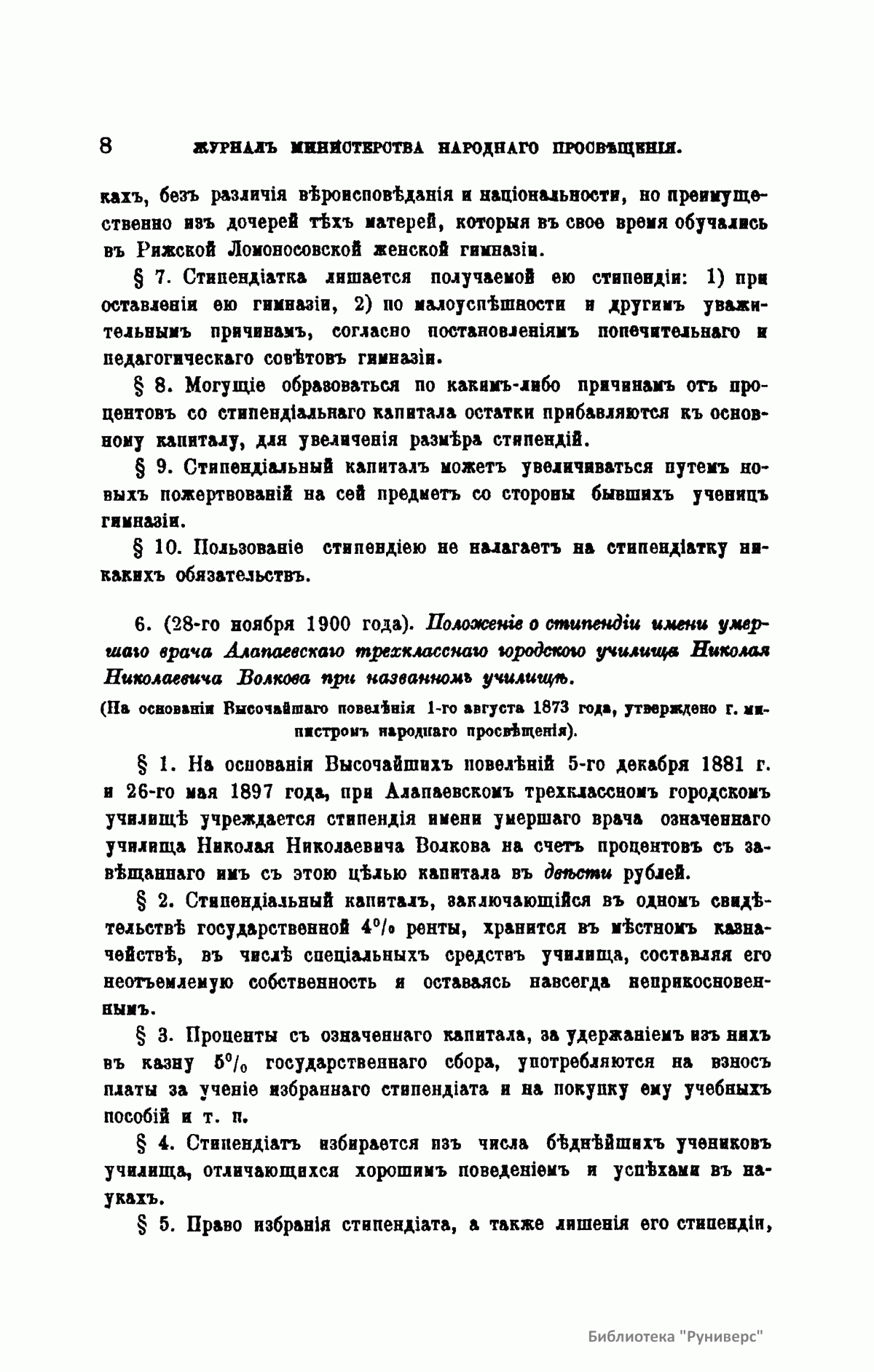 Журнал Министерства народного просвещения выходил с 1834-го по 1917 год. Официальный периодический журнал об успехах просвещения в России. Издатели журнала уверены в том, что «если для каждого человека необходим выход из грубой тьмы невежества и беспрерывное дальнейшее движение к свету, то для народов необходимо попечительное участие правительства в образовании. Только правительство имеет все средства знать и высоту успехов всемирного образования, и настоящие нужды Отечества».