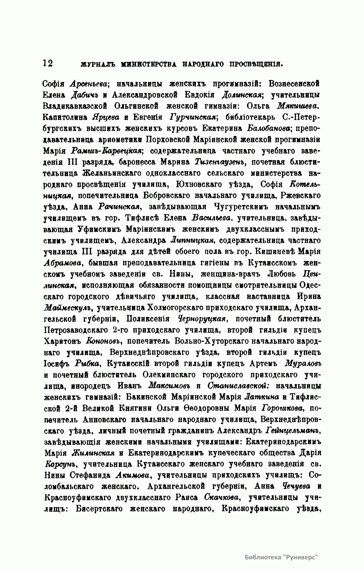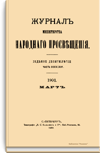Журнал Министерства народного просвещения выходил с 1834-го по 1917 год. Официальный периодический журнал об успехах просвещения в России. Издатели журнала уверены в том, что «если для каждого человека необходим выход из грубой тьмы невежества и беспрерывное дальнейшее движение к свету, то для народов необходимо попечительное участие правительства в образовании. Только правительство имеет все средства знать и высоту успехов всемирного образования, и настоящие нужды Отечества».