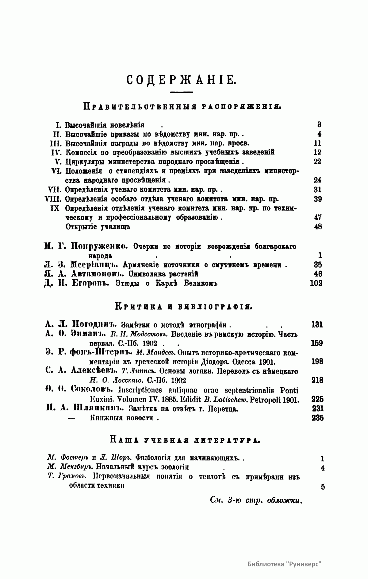 С 1864 года стали выходить указатели к повременным изданиям Министерства народного просвещения начиная с 1803 года.