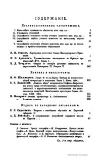 Журнал Министерства народного просвещения выходил с 1834-го по 1917 год. Официальный периодический журнал об успехах просвещения в России. Издатели журнала уверены в том, что «если для каждого человека необходим выход из грубой тьмы невежества и беспрерывное дальнейшее движение к свету, то для народов необходимо попечительное участие правительства в образовании. Только правительство имеет все средства знать и высоту успехов всемирного образования, и настоящие нужды Отечества».