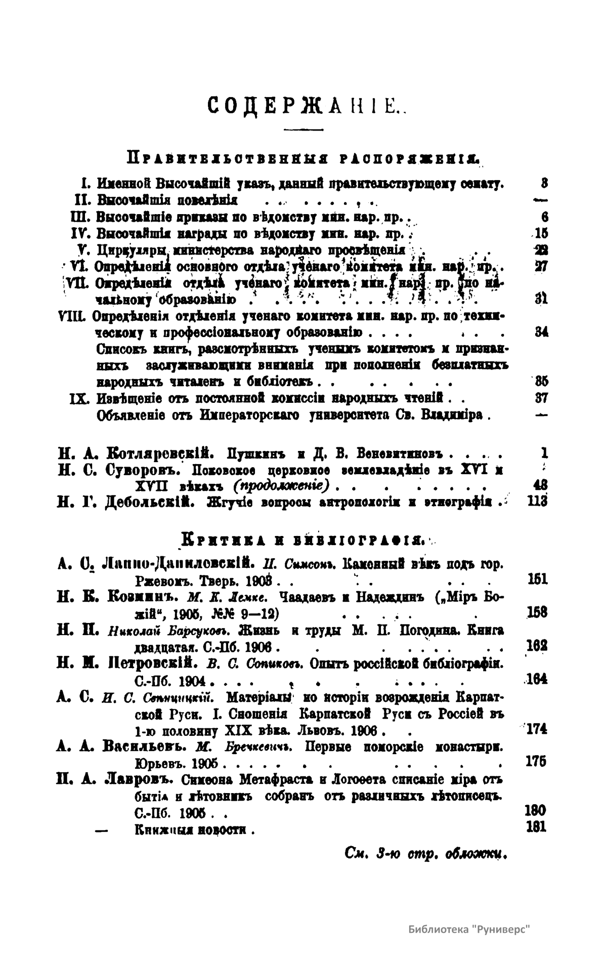 С 1864 года стали выходить указатели к повременным изданиям Министерства народного просвещения начиная с 1803 года.