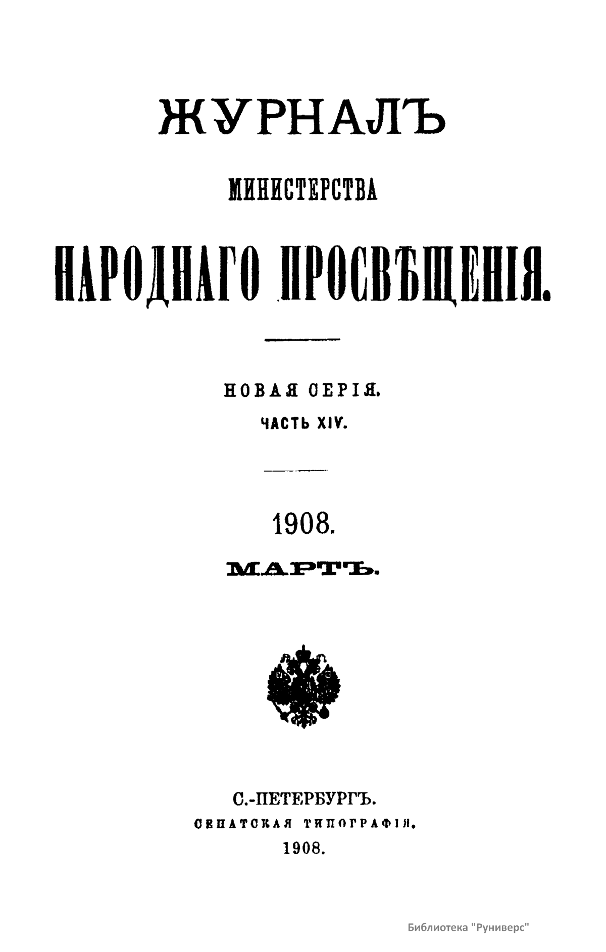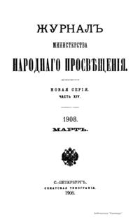 Журналъ Министерства народнаго просвѣщения. Новая серiя. Часть XIV