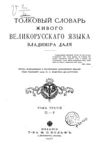 Толковый словарь живаго великорускаго языка Владимiра Даля. Томъ третiй. П — Р