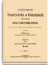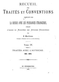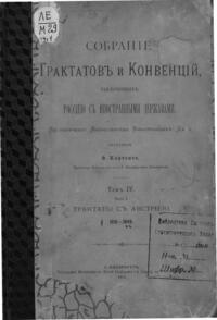 Собрание Трактатов и Конвенций, заключенных Россией с иностранными державами. Том IV. Часть 1. Трактаты с Австрией.