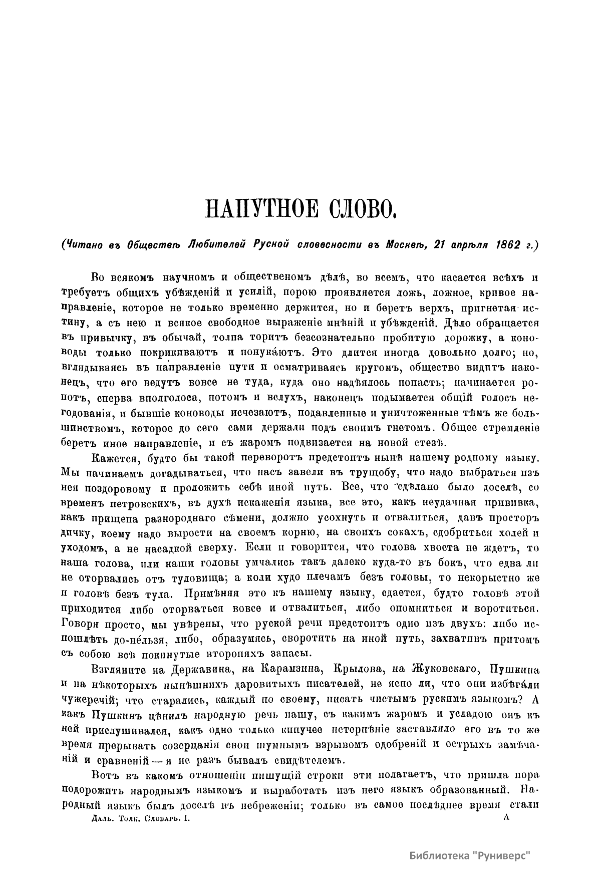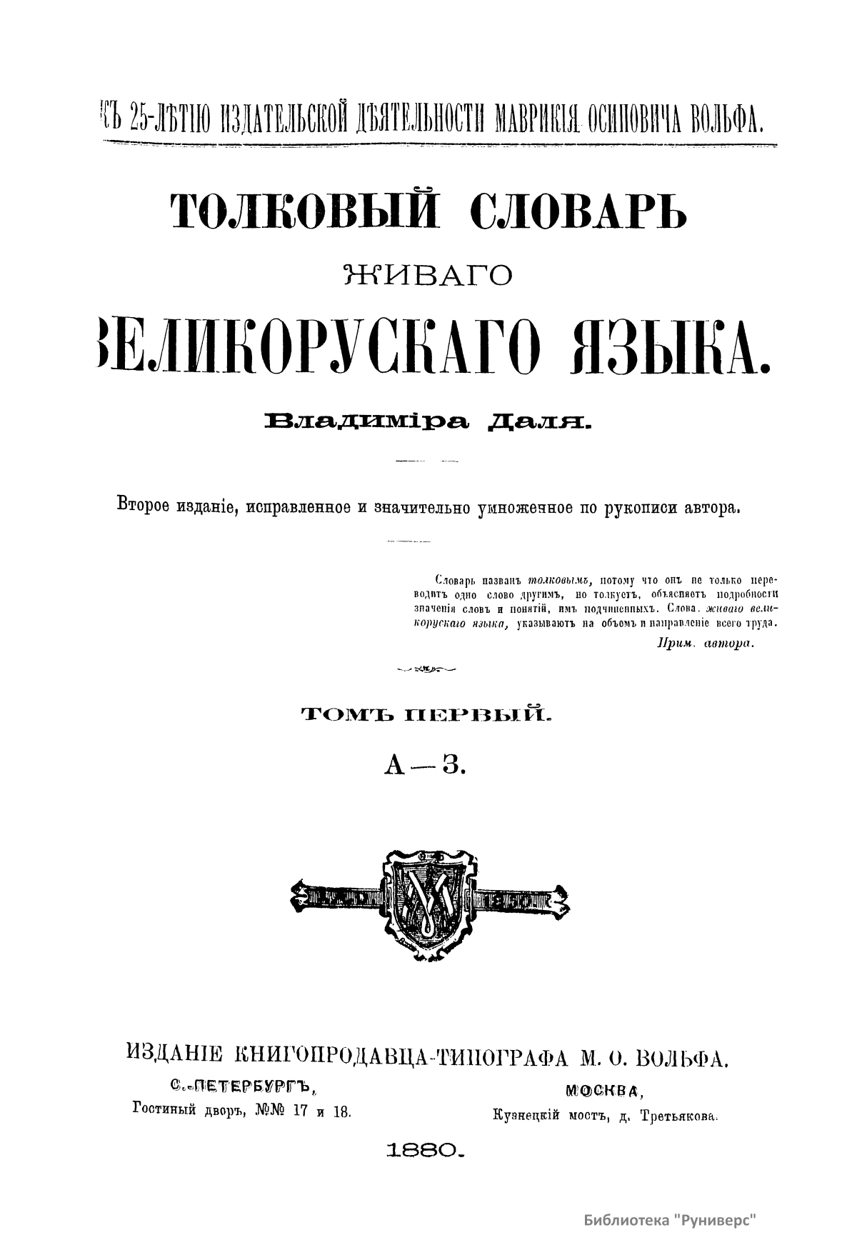 Толковый словарь живаго великорускаго языка Владимiра Даля