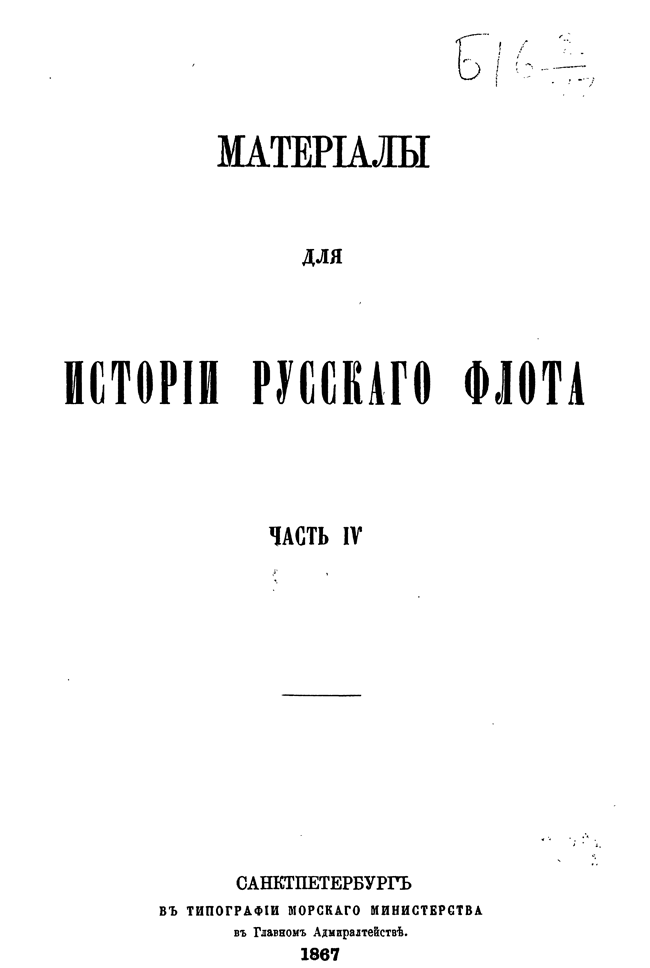 Первые 5 томов издания «Материалы для истории русского флота», изданные в 1865-1875 гг., были подготовлены историографом Российского флота С. И. Елагиным (1824 — 1868). После его смерти работу по написанию «Материалов...» продолжили его сотрудники и Ф.Ф. Веселаго. Всего же было издано 18 томов в период с 1865 по 1904 гг.