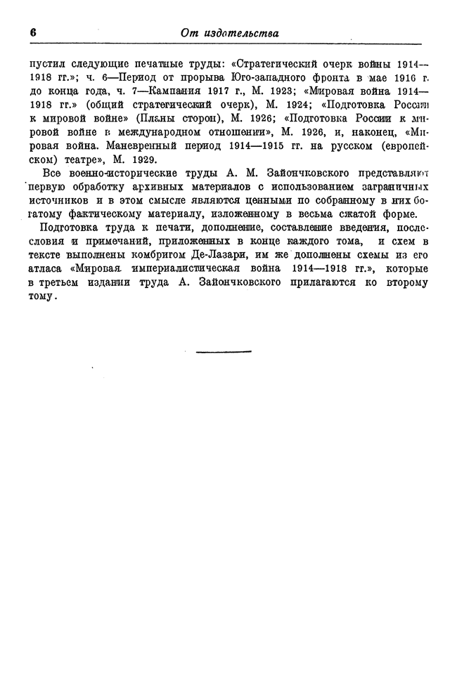 Во время Первой мировой войны Зайончковский командовал корпусами и армией, поэтому ему удалось совместить архивные данные с собственными наблюдениями и опытом.