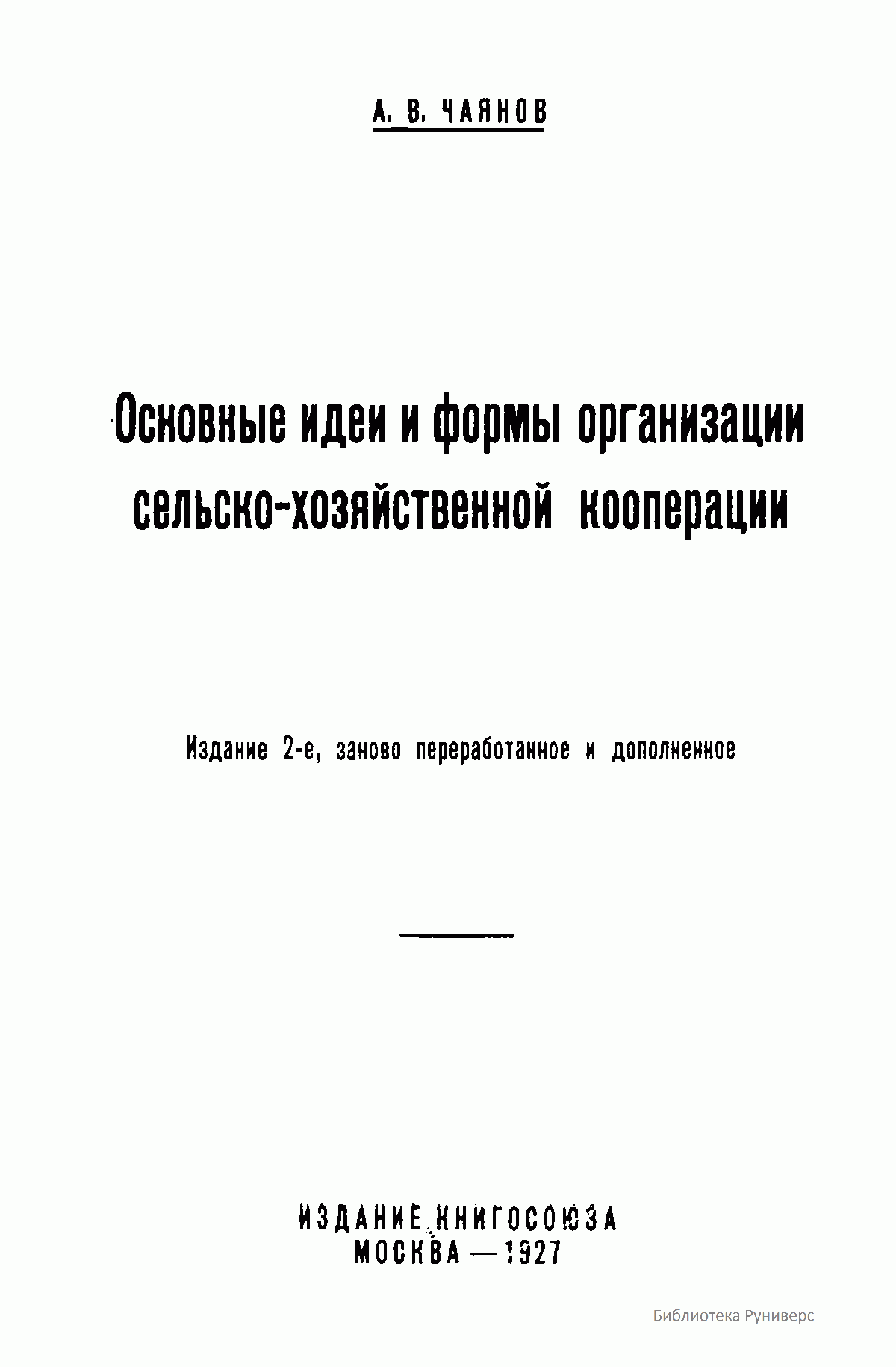 Творчество выдающегося русского экономиста-аграрника Александра Васильевича Чаянова отличается исключительным богатством и разнообразием. Оттачивая свои концепции, он развивал и дополнял их на протяжении двух десятилетий. Характерно, что Чаянов имел обыкновение работать над несколькими проблемами одновременно, последовательно публикуя различные редакции одних и тех же работ. Неудивительно, что его современники не могли охватить одним взглядом эту систему гипотез и теорий. Тем более достаточно сложен Чаянов и для сегодняшних исследователей.