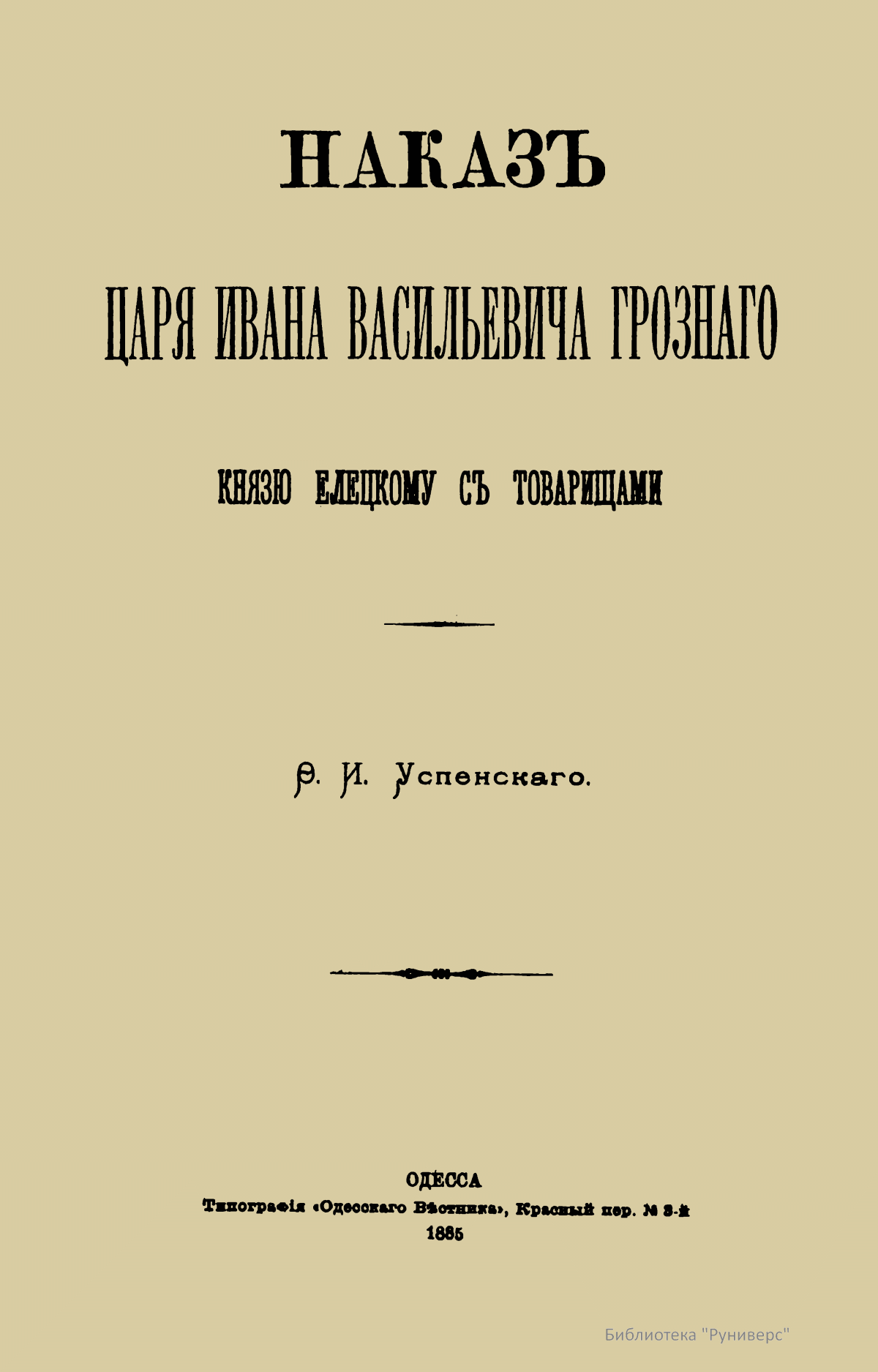 НАКАЗЪ ЦАРЯ ИВАНА ВАСИЛЬЕВИЧА ГРОЗНАГО КНЯЗЮ ЕЛѢЦКОМУ СЪ ТОВАРИЩАМИ