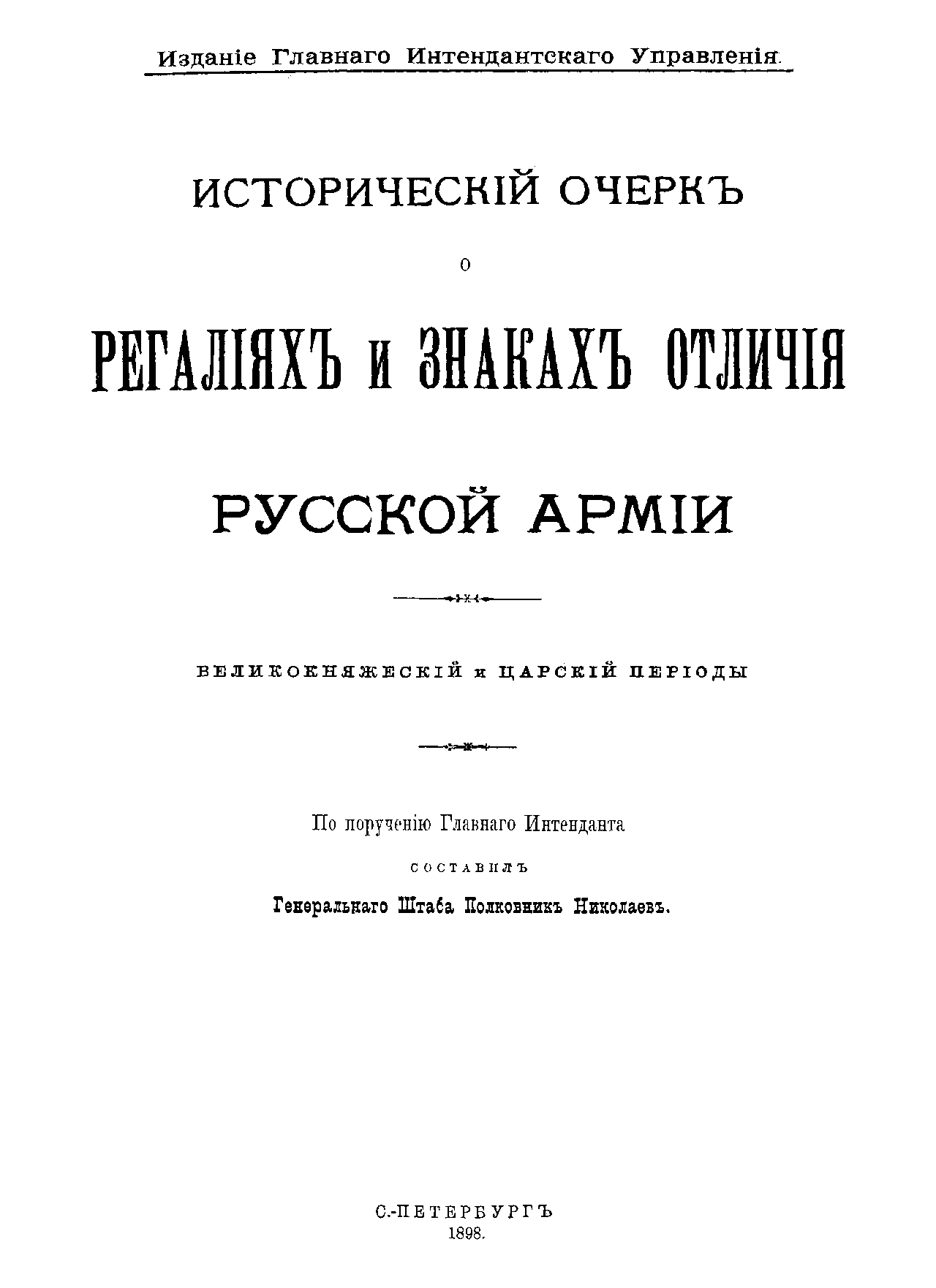 Историческiй очеркъ о регалiяхъ и знакахъ отличiя русской армии