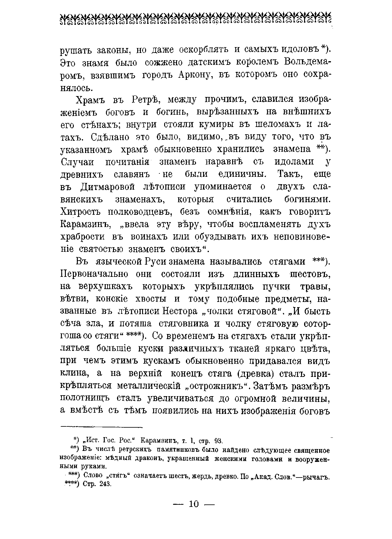 Фундаментальный военно-исторический труд о регалиях и знаках отличия русской армии подводит определенный итог изучению воинской символики в российской военно-исторической науке в XIX веке, описывающий все имевшиеся в последнее царствование в армии знаки отличия, как индивидуальные, так и коллективные. В первой части исследованы регалии великокняжеского и царского периодов, а во второй – рассмотрены знаки отличия с царствования Петра Великого по 1890-е годы. Книга является основополагающим трудом по знакам отличия русских войск, значение которого и сегодня трудно переоценить. В своём исследовании известный военный историк полковник Генерального штаба Н.Г. Николаев выделил основные этапы эволюции знамён (стягов и прапоров) в вооруженных силах России, начиная с княжеских дружин XV столетия, раскрыл их роль и значение в разные исторические эпохи развития Российского государства. В частности этим автором было определено, что знамёна российской императорской армии в начале XVIII столетия, согласно указам Петра Великого, позиционировались как атрибут системы мундирного довольствия и вместе с барабанными перевязями, фурьерскими значками и прочим имуществом учитывались Военной коллегией в описи полковой амуниции. Вместе с тем, с 1731 г. некоторые военные знамёна по именному императорскому указу «стали жаловать подразделениям», а с 1735 г. «Артикулом Воинским с кратким толкованием» было регламентировано принятие присяги при распущенном знамени. В этой работе также утверждается, что именно с введением в действие императором Павлом I в ноябре 1796 г. нового «Воинского Устава», в котором отдельная глава была посвящена освящению новых знамён и «отдаче старых», военные знамёна обрели статус воинских регалий и полковых святынь. Данный труд характеризуется своей уникальной детализацией описываемых предметов. Так, Н.Г. Николаев приводит мельчайшие подробности учреждения в армии знамён отдельных видов конницы. Например, сразу же после учреждения гусарских полков в русской коннице, в октябре 1741 года гусары стали получать знамена, которые полагались на каждую роту. Знамя было легкое, разрезное, с длинными хвостами «по гусарскому обыкновению». Срок их службы был определен в 10 лет. Перевязи к ним корнеты изготовляли за свой счет и меняли их по усмотрению ротного командира. Одно; из знамен (полковое) полагалось белое, с государственным гербом, а остальным ротам цветные, с императорским вензелем.