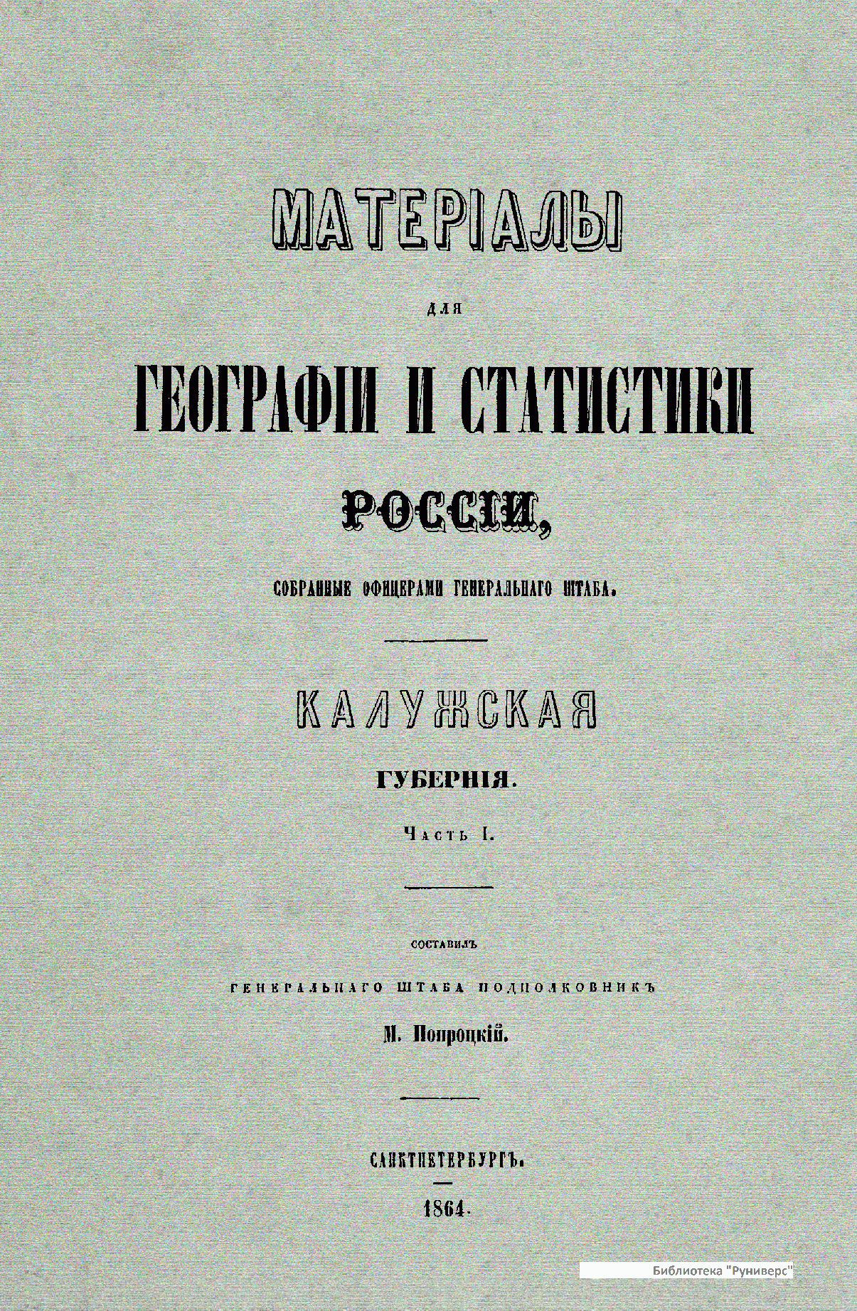 Материалы для географии и статистики России, собранные офицерами Генерального штаба. Калужская губерния. Часть 1