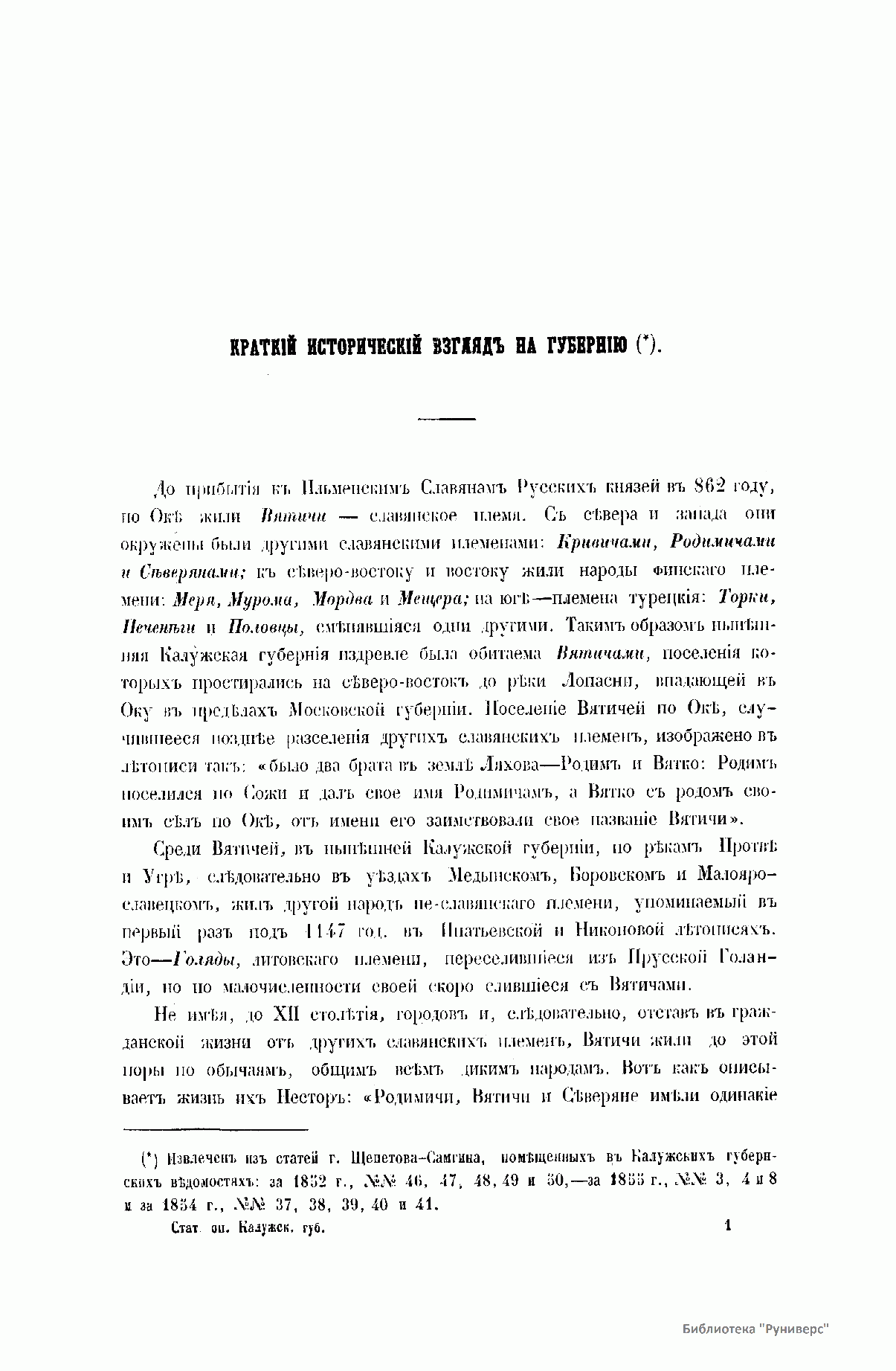 Матерiалы для географiи и статистики Россiи, собранные офицерами Генеральнаго штаба. Калужская губернiя. Часть 1