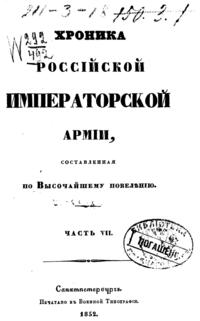 Важнейший энциклопедический справочник, содержащий детальную историю всех российских войсковых частей. Составлен в правление Николая I.