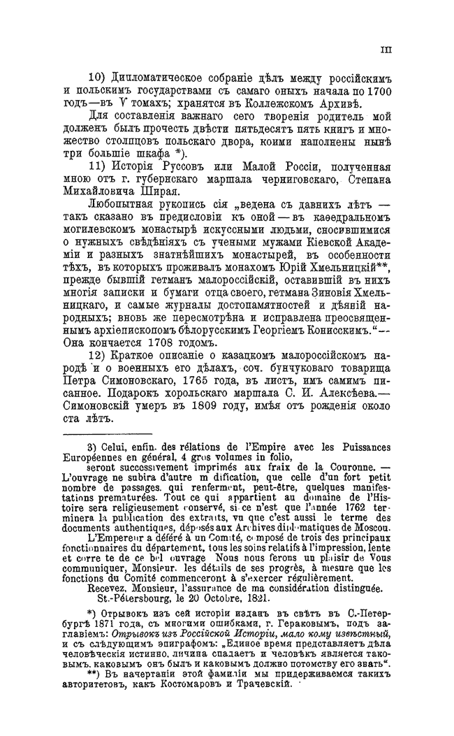Первоначальный труд, посвященный в основном древней истории, был во втором издании 1830 г. дополнен описанием событий от времени присоединения Малороссии к России до упразднения Гетманства.