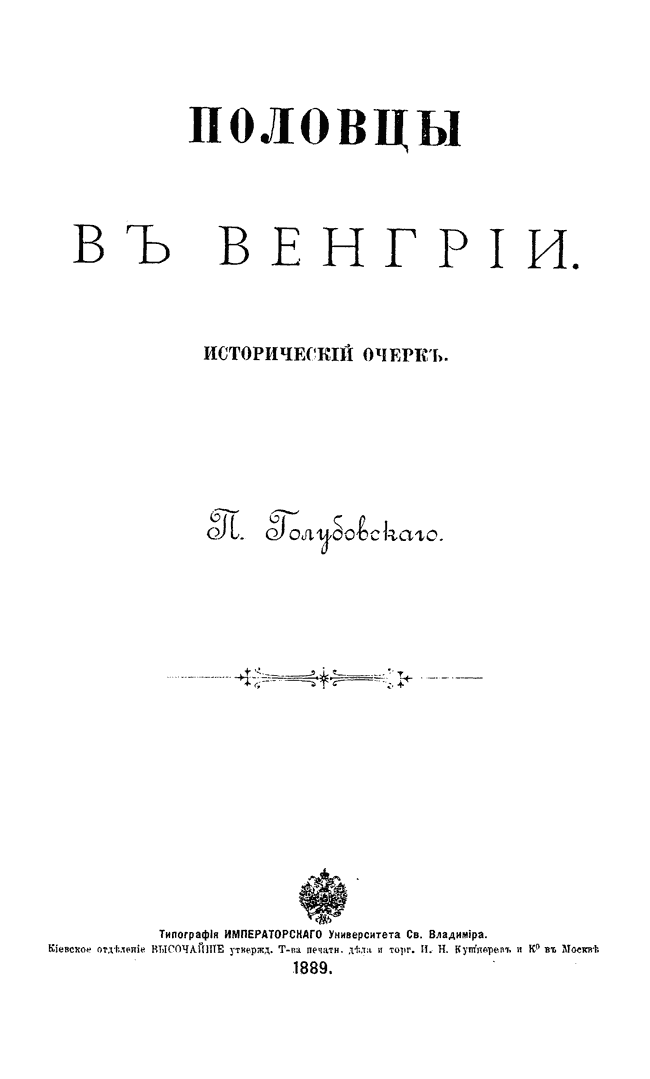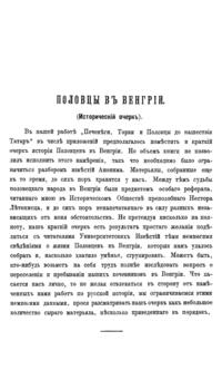 Краткий исследовательская работа, которую автор первоначально задумывал как приложение к своему исследованию «Печенеги, торки и половцы до нашествия татар», 1884. В брошюре собраны редкие сведения о переселении и жизни половецких кочевников в Венгрии.