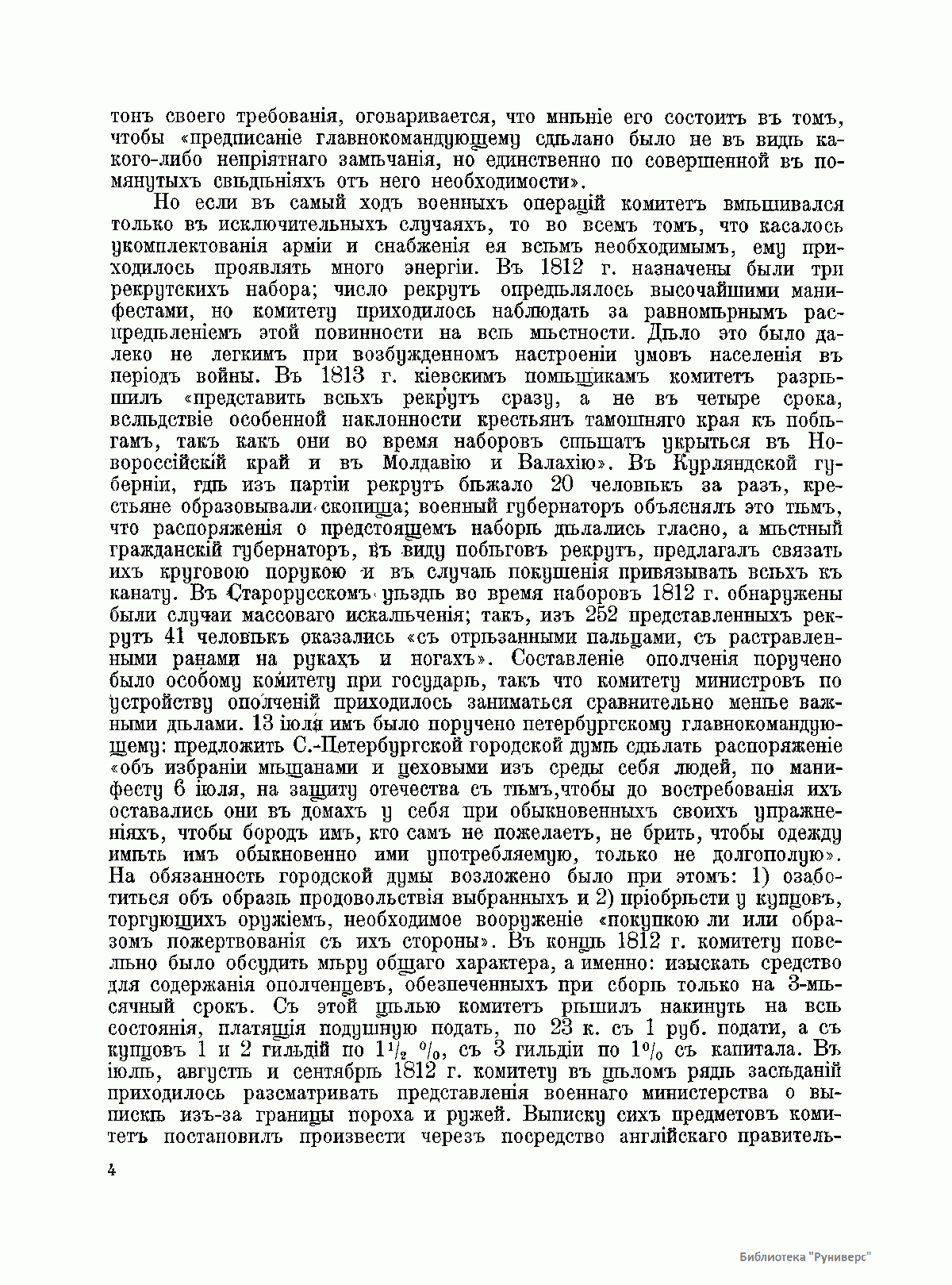 Настоящее научное издание – плод кропотливого коллективного труда Исторической комиссии, которая поставила перед собой цель дать объективную картину событий. Составляя план книги, авторы руководствовались следующими соображениями. Отечественная война 1812 года – один из самых драматических и вместе с тем самых значительных по последствиям моментов русской истории. Только поставленная в рамки европейской истории, изучаемая в тесной связи со всей эпохой, она может быть понята и оценена надлежащим образом. Поэтому книга начинается с эпохи Екатерины II, с франко-русских и вообще международных отношений ее времени, с первых столкновений революции с Европой, а заканчивается не вступлением русских войск в Париж и не Венским конгрессом, а концом царствования Александра I. Авторы критически относятся к политике Александра I в отношении похода в Европу, после того как Наполеон потерпел поражение в России, так как освобождение Европы «положило первые камни» тому самому могуществу Пруссии и Австрии, в котором коренятся все политические беды России. Недаром Кутузов своим трезвым умом понимал всю ненужность и опасность такого политического благотворительства. Причины такой «сентиментальной политики» авторы видят в том, что правительство не хотело считаться с интересами страны, а руководствовалось только личными видами. Такая политика, по мнению авторов, проводилась в течение всего XIX века. Авторы не считают Отечественную войну событием исключительно военным. Они делают попытку разглядеть облик русского общества, определить долю участия в войне русских общественных групп, выяснить ту меру признательности, которой потомки обязаны каждой из них. Многие из авторов имели возможность использовать новые архивные данные, большинству же приходилось оперировать уже опубликованным материалом. Таким образом, издание дает и сводку того материала, который был известен в значительной мере только специалистам. В книге представлены различные иллюстрации.