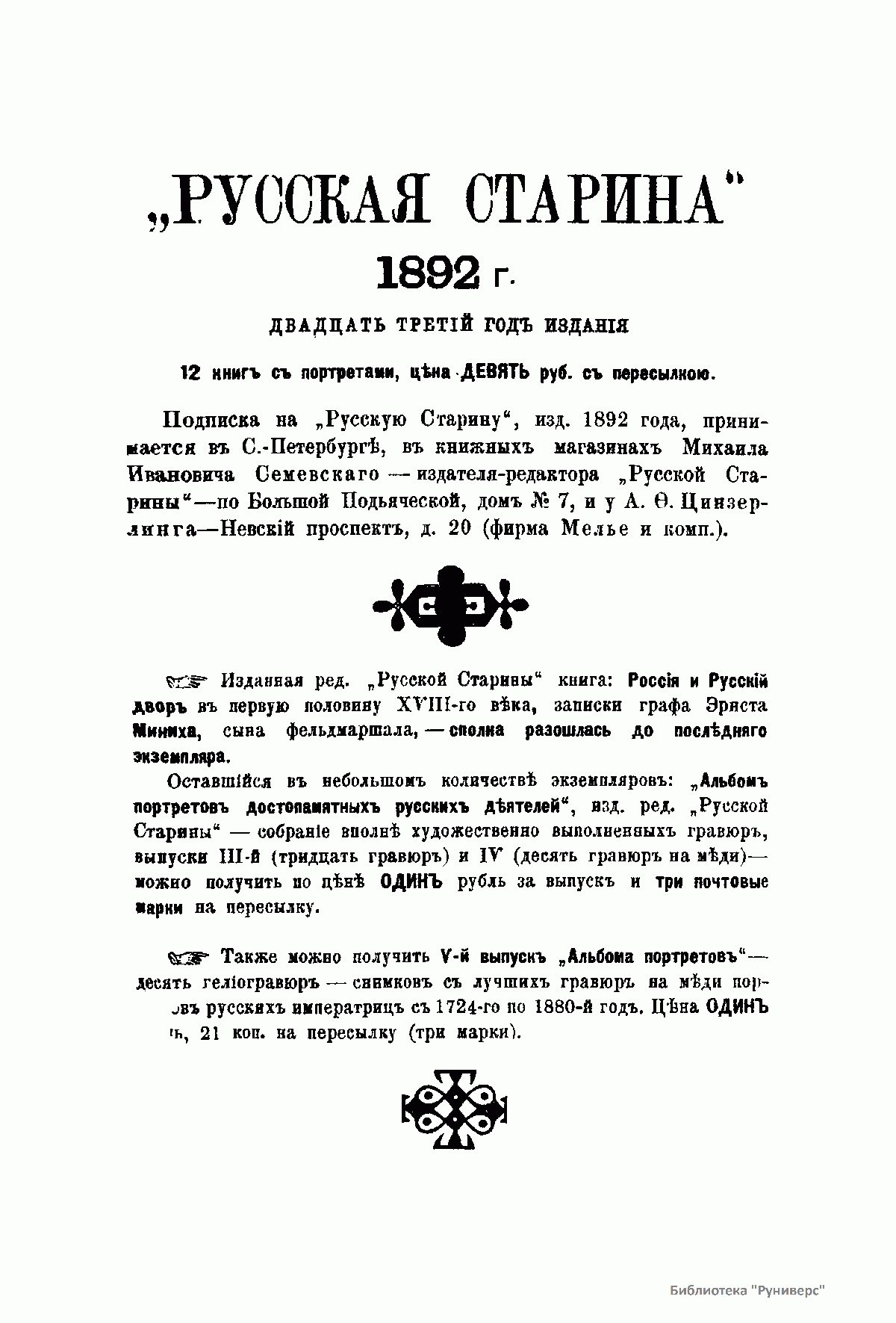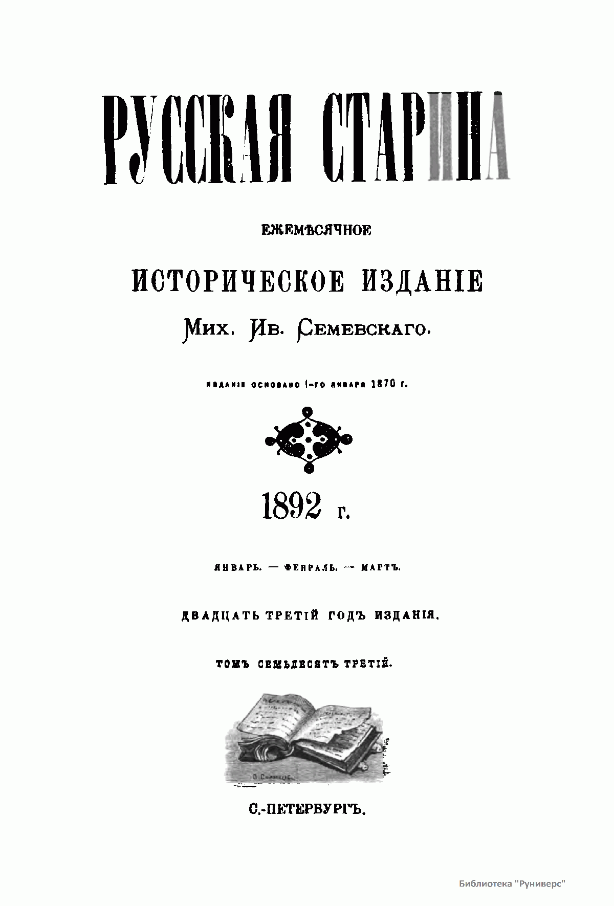 Русская cтарина. Томъ LXXIII. 1892. Выпуски 1-3