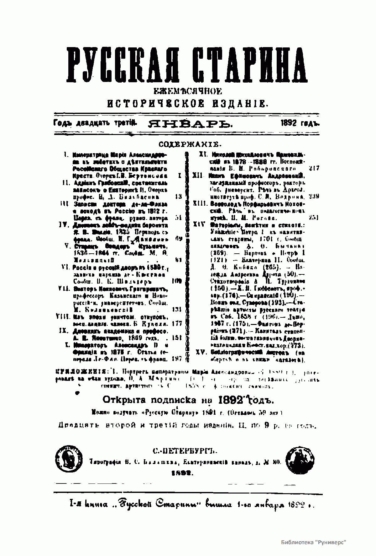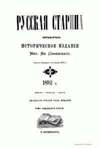 Русская cтарина. Том LXXIII. 1892. Выпуски 1-3