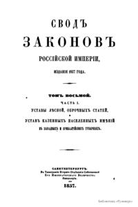 Свод законов Российской империи. Том восьмой. Часть I. Уставы лесной, оброчных статей, и устав казенных населенных имений в западных и прибалтийских губерниях