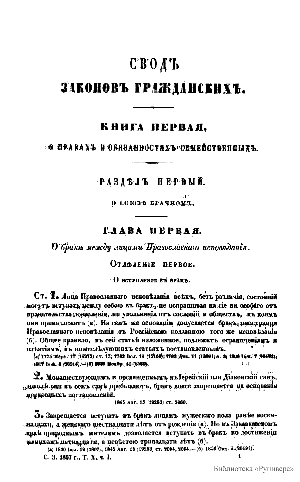 Свод законов Российской империи. Том десятый. Часть I. Законы гражданские