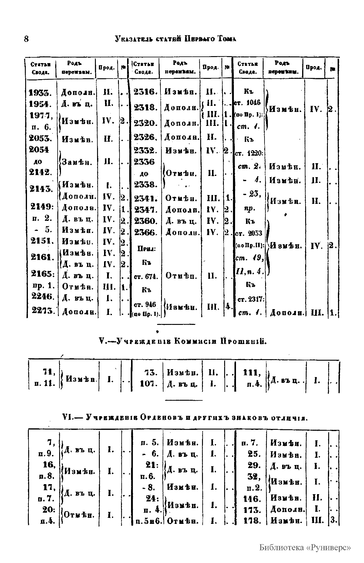 Том восьмой. Часть I. Уставы лесной, оброчных статей, и устав казенных населенных имений в западных и прибалтийских губерниях