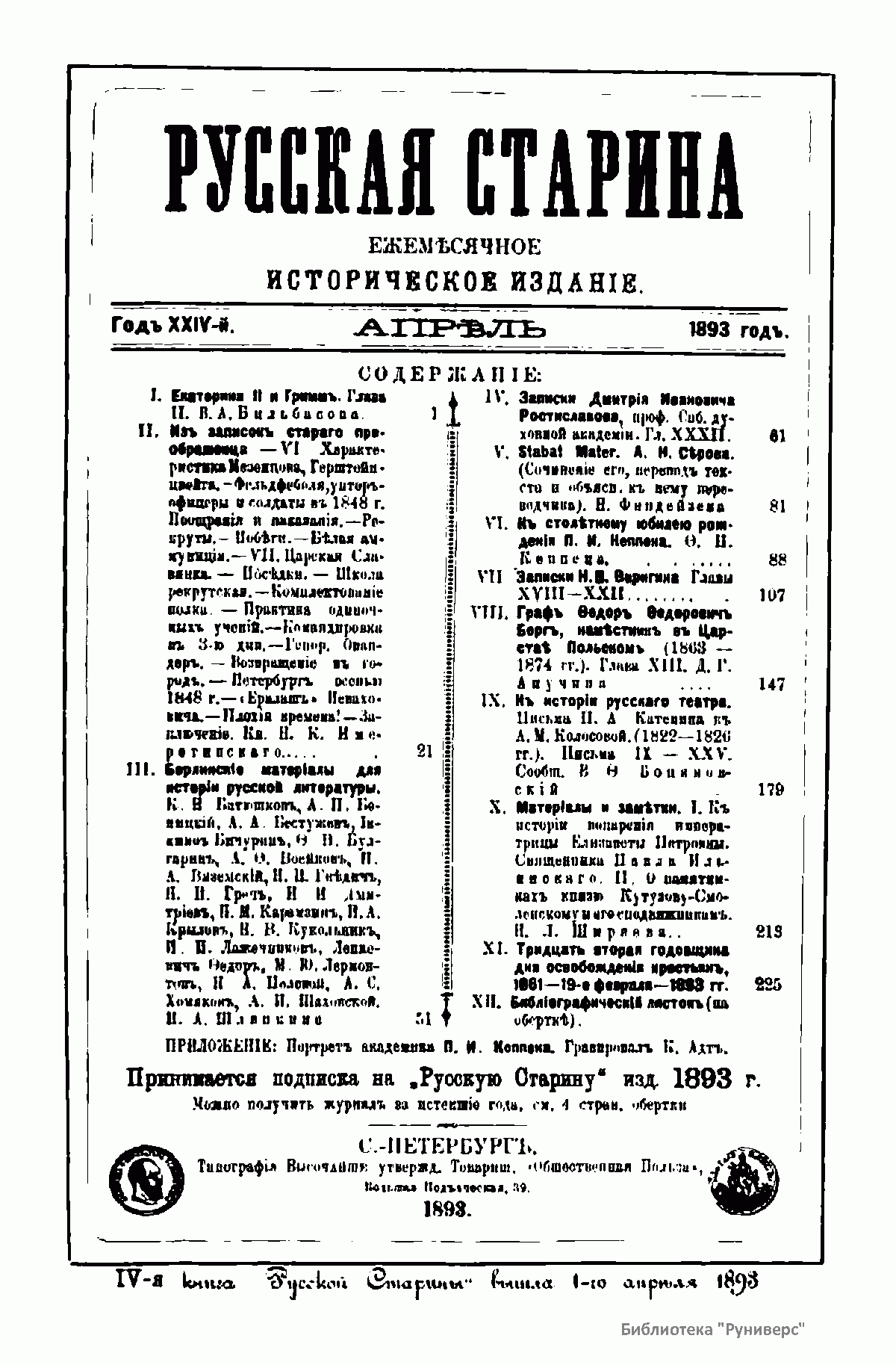 Русская старина. Том LXXVIII. 1893. Выпуски 4-6