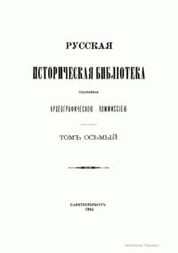 Русская историческая библiотека, издаваемая Археографическою комиссiею. Томъ осьмый