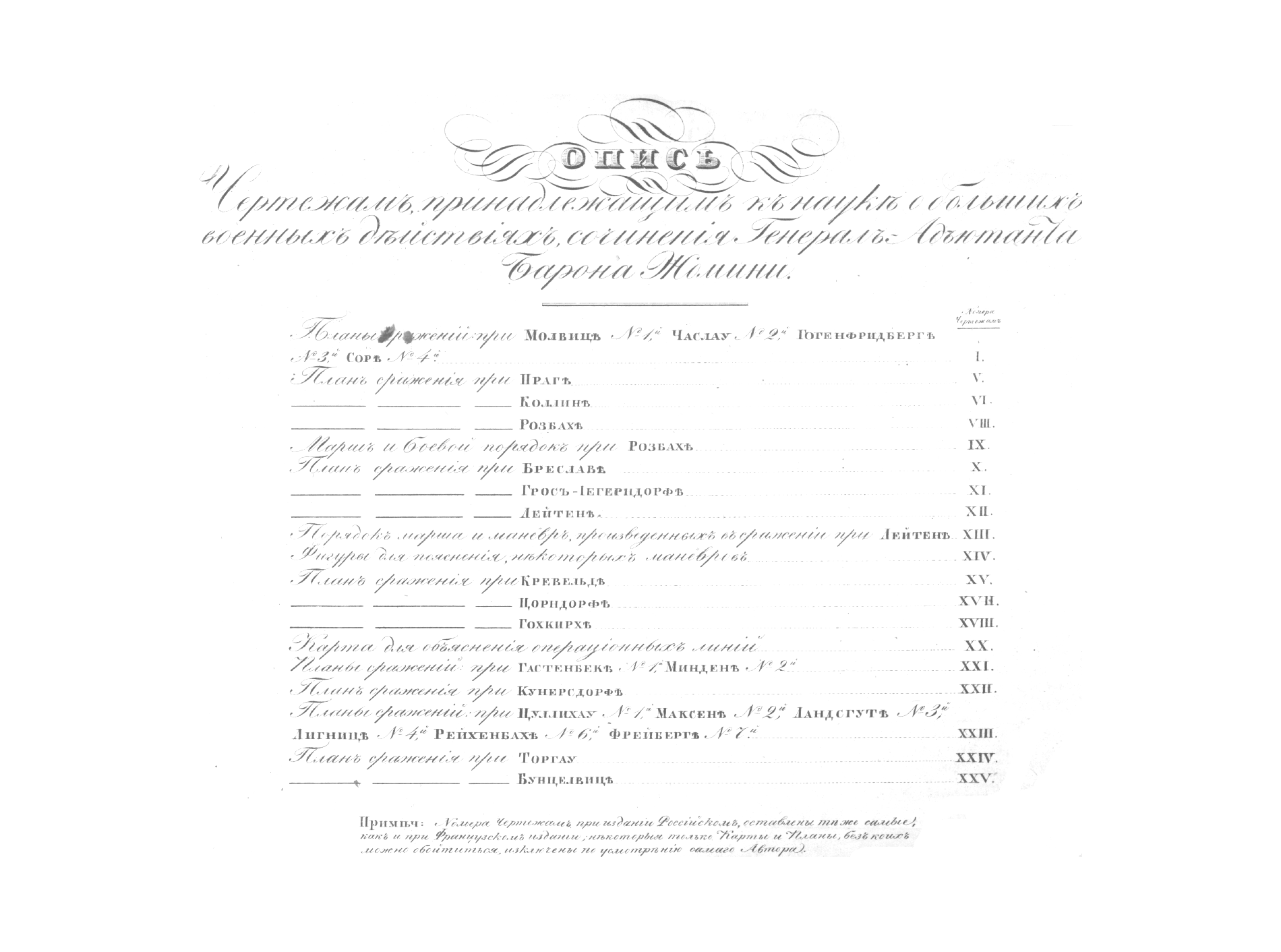 В атласе, подготовленном выдающимся военным теоретиком 1-й половины XIX века генералом на русской службе бароном Г.В. Жомини, выступившим инициатором создания Императорской Академии Генштаба, представлены схемы сражений эпохи Семилетней войны в Европе середины XVIII столетия, иллюстрирующие эволюцию основ военной стратегии армий стран-участниц, главным образом прусской армии Фридриха II Великого.