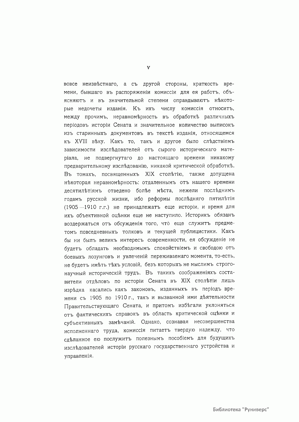Настоящее издание посвящено истории Правительствующего сената — высшего государственного органа Российской империи, подчиненного императору. Учрежденный Петром Великим, за годы своего существования Сенат претерпевал значительные изменения, поскольку каждый русский монарх видоизменял этот орган в соответствии с собственным видением задач государственного управления. В данном издании все изменения функций Сената прослежены преимущественно по периодам правлений русских монархов. Первый и второй тома посвящены истории Сената в XVIII в., материалы, относящиеся к деятельности Сената в XIX в., составляют третий и четвертый тома. В дополнительный пятый том вошли статьи, посвященные местонахождению и убранству Сената, изданиям при Сенате, форменной одежде сенаторов, чинов обер-прокурорского надзора и канцелярии Сената, в качестве приложений помещены список сенаторов за 200 лет и алфавитные указатели. Составлением этого фундаментального труда занималась специальная комиссия под председательством сенатора Н. А. Добровольского. Редактура отдельных томов была возложена на заслуженного ординарного профессора Императорского Московского университета А. Н. Филиппова, ординарного профессора Санкт-Петербургского университета С. Ф. Платонова, доктора русской истории, библиотекаря Императорской публичной библиотеки Н. Д. Чечулина, ординарного профессора Императорского училища правоведения Э. Н. Берендтса. При этом редакторы, с одобрения комиссии, могли привлекать сотрудников для обработки отдельных глав и частей томов (в общей сложности подготовкой текстовой части занимались 17 человек). Перед составителями истории Сената была поставлена конкретная цель: полное и точное изображение деятельности работы Сената во все эпохи его двухвековой деятельности должно было сочетать в себе серьезность научного исследования и доступность литературного изложения. В подготовке издания использовались материалы почти всех центральных архивов и библиотек России, в том числе закрытого для широко доступа архива Собственной его императорского величества канцелярии. В результате проделанной работы вышел в свет труд, отличающийся исторической полнотой и новизной, в научное обращение было введено много ранее не опубликованных документов. Издание иллюстрируют портреты императоров и сенаторов, виды зданий Сената и интерьеров, факсимиле важнейших документов. Наиболее ценный художественный материал был получен из коллекций и изданий Великого князя Николая Михайловича и из коллекции П. Я. Дашкова; были также использованы коллекции Императорского Эрмитажа, Императорской публичной библиотеки и частных лиц.